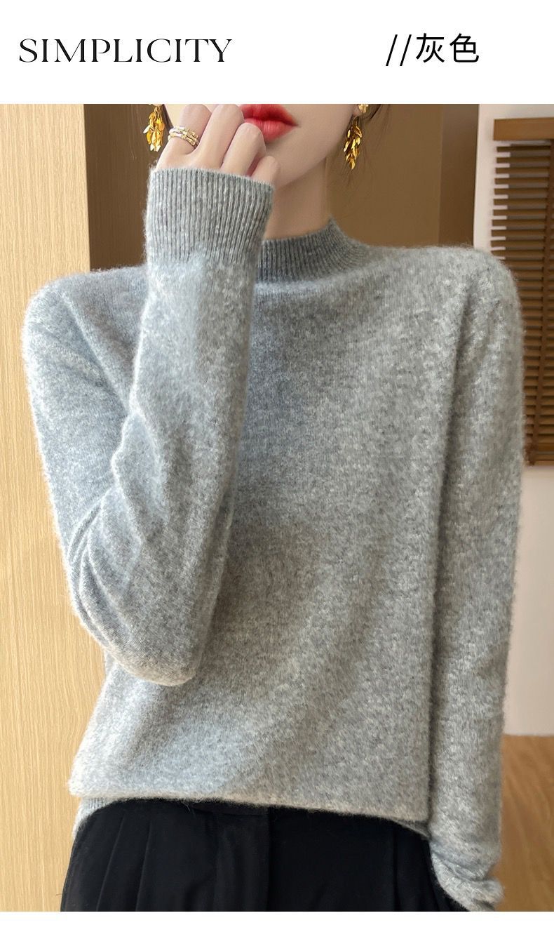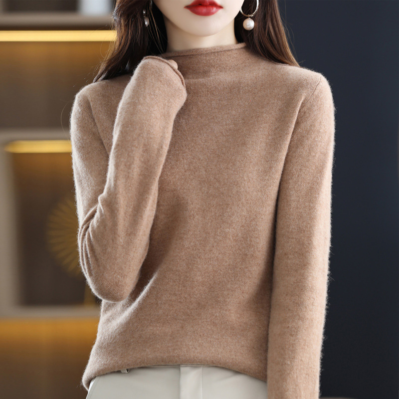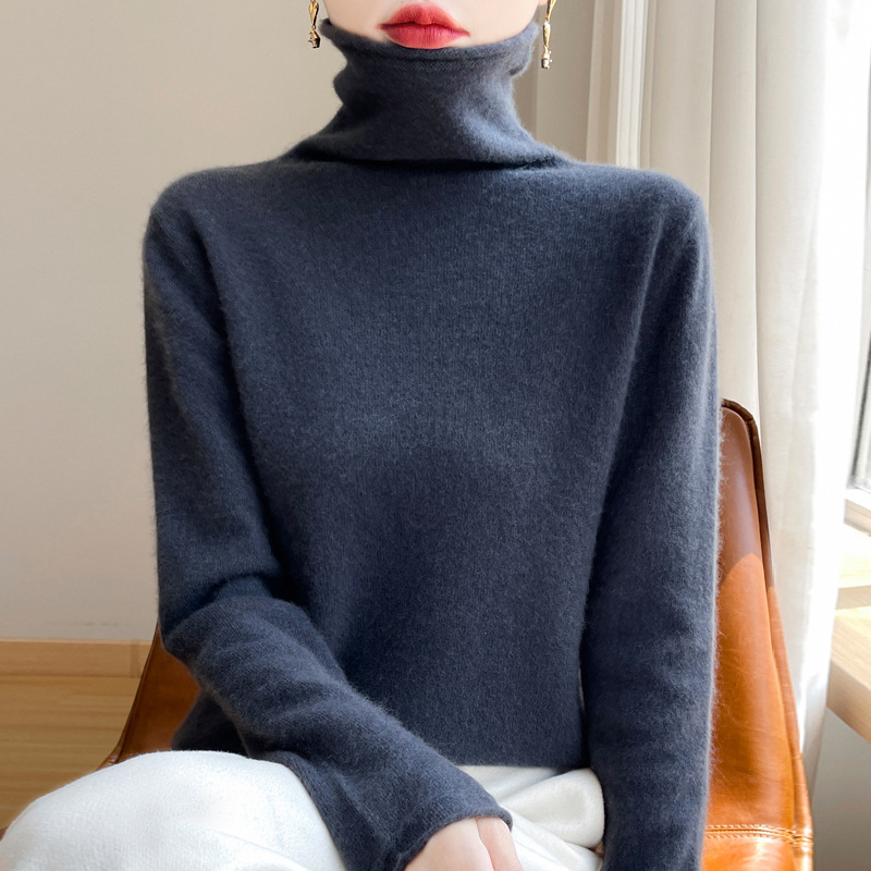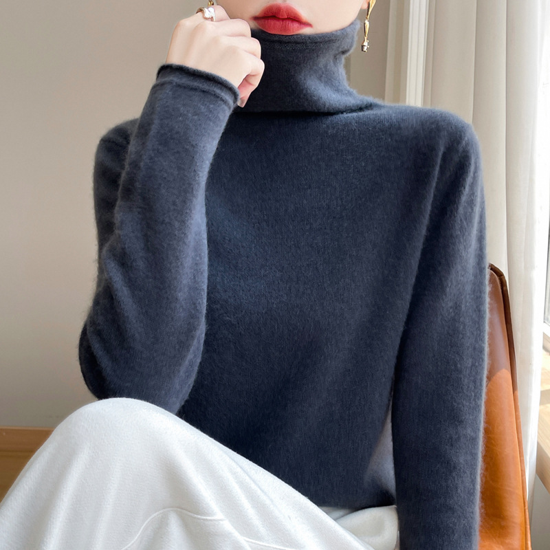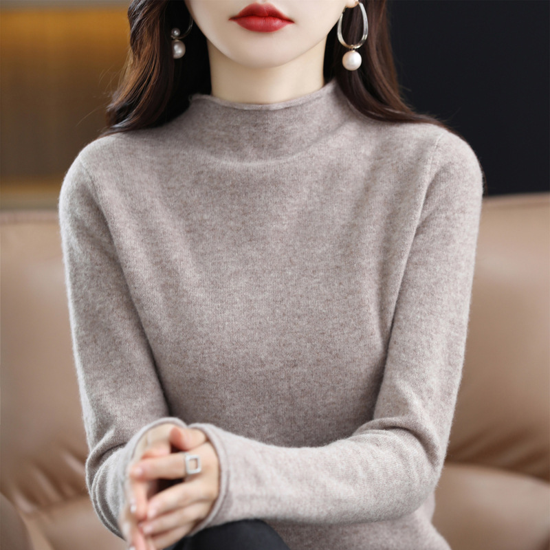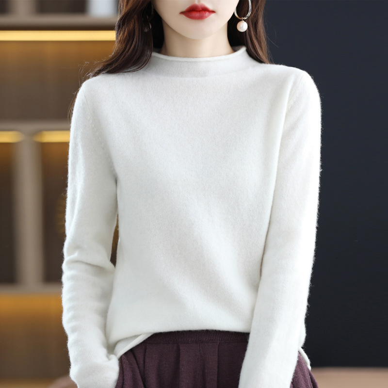 Главная страница > Вкладной воротник свитер женский 100% чистый шерстяной вязаный нижний свитер осень-зима новый свиток с высоким воротником