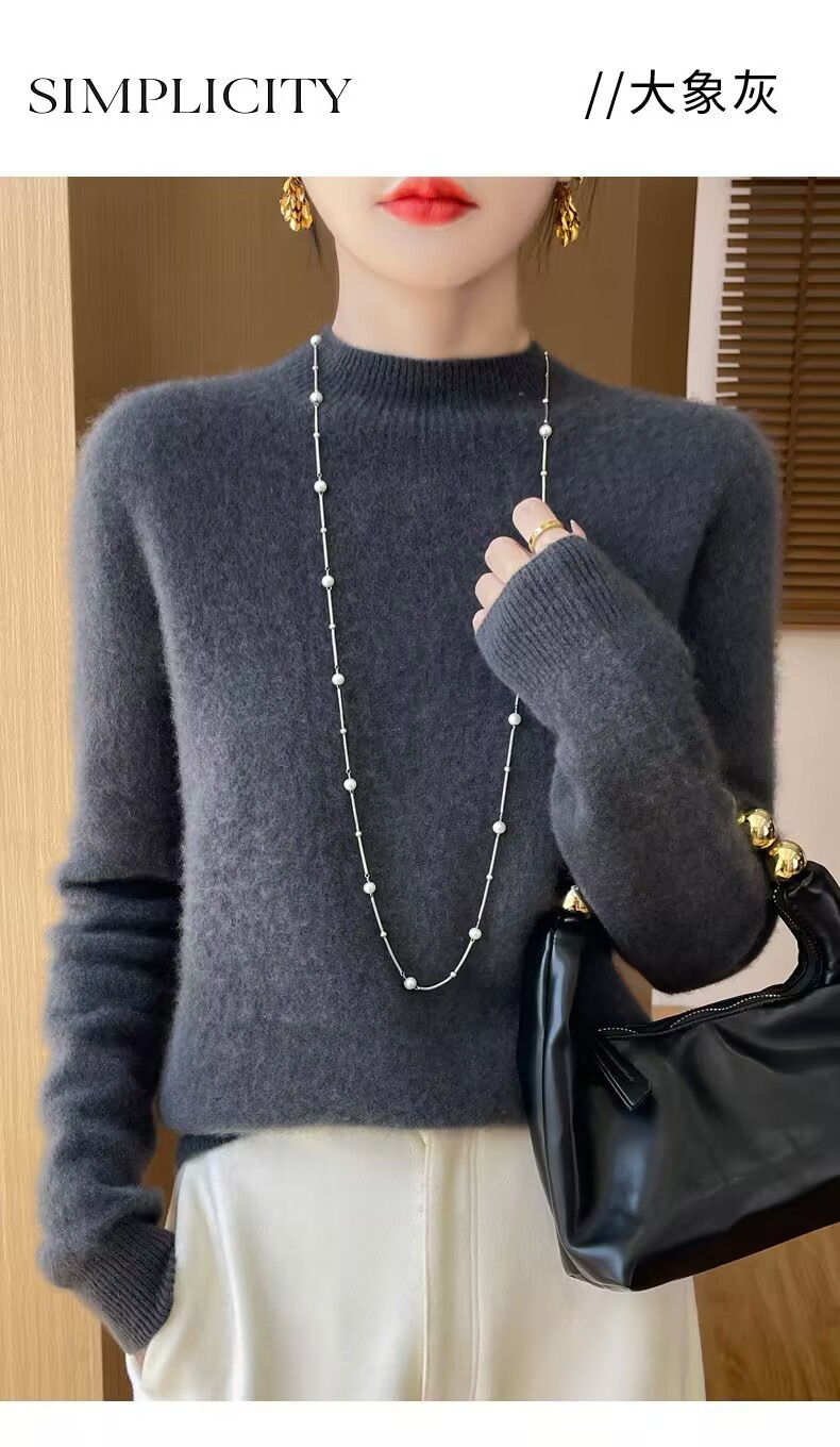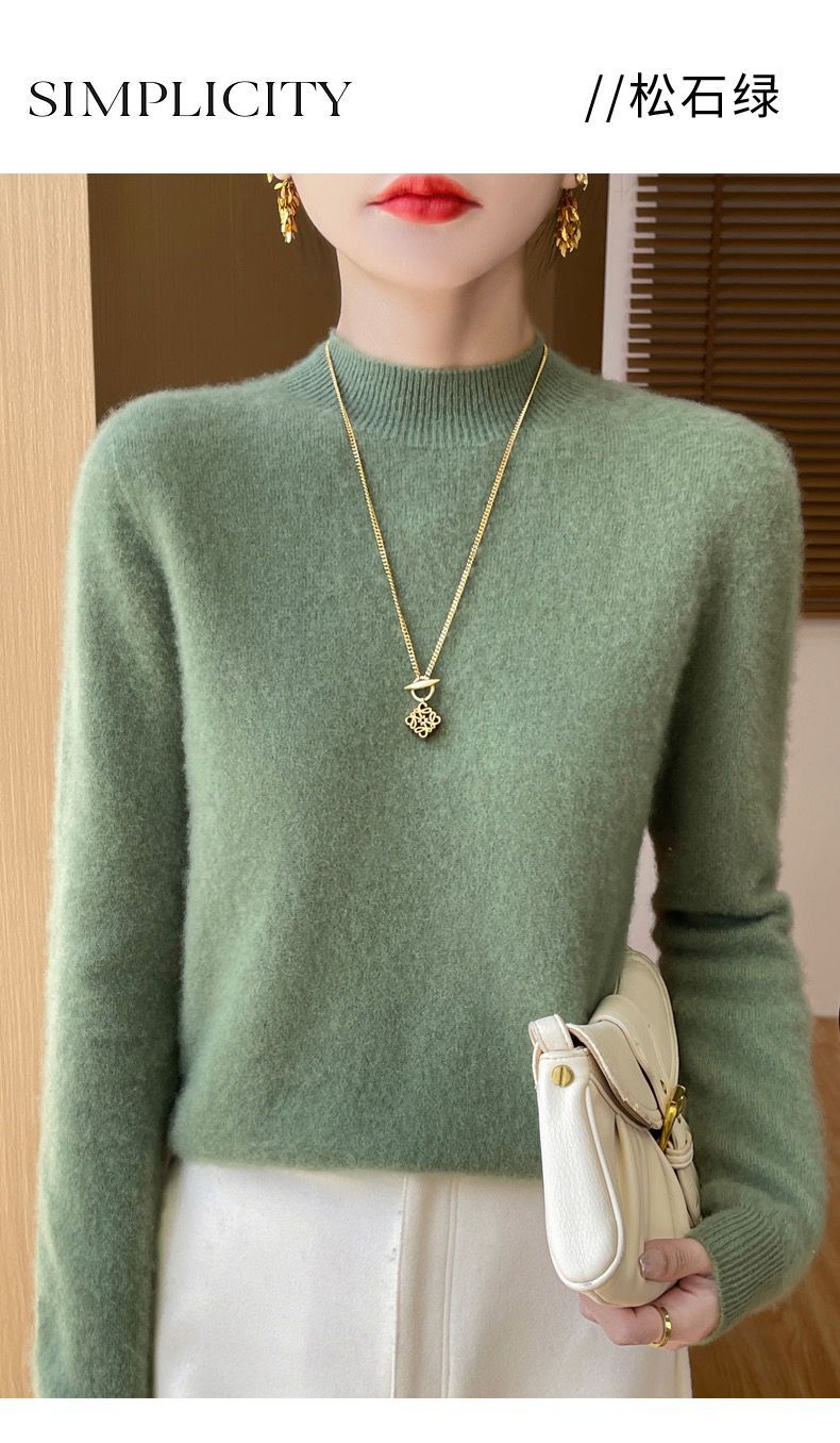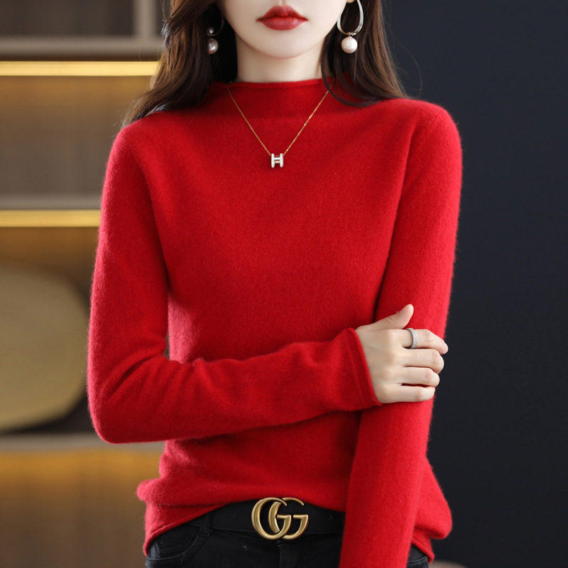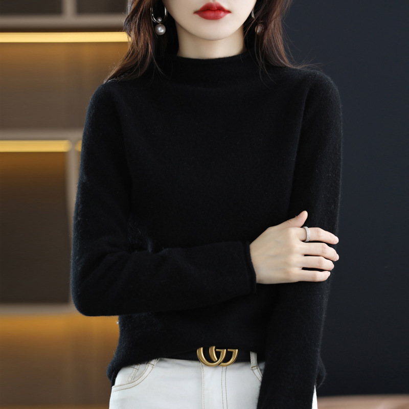 Главная страница > Вкладной воротник свитер женский 100% чистый шерстяной вязаный нижний свитер осень-зима новый свиток с высоким воротником