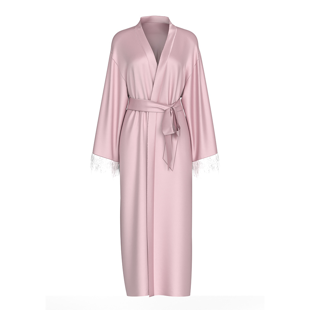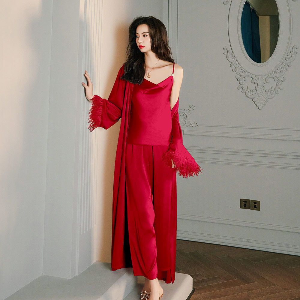 Главная страница > Yaoting ледяной шелк пижамы женский летний длинный рукав атласный перо халат с камином брюки набор домашней одежды 2658 2659