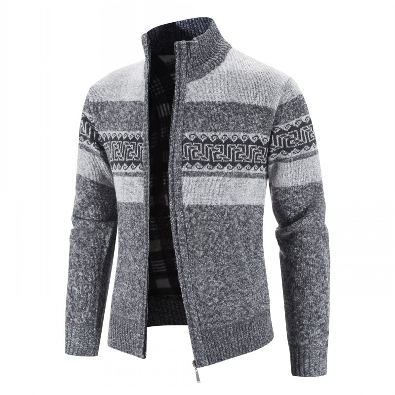 Главная страница > Утолщенная куртка больших размеров на флисовой подкладке, мужской свитер, пальто, кардиган с воротником-стойкой, стойка для внешней торговли, мужской повседневный вязаный кардиган