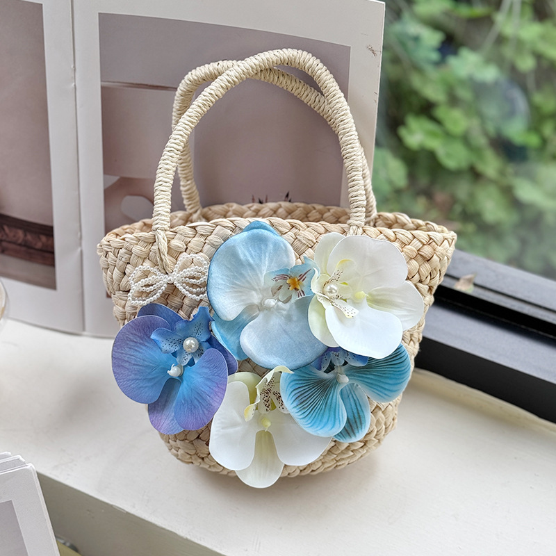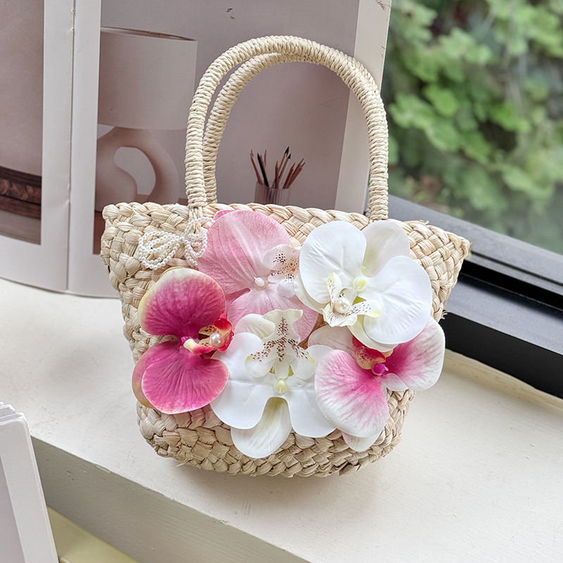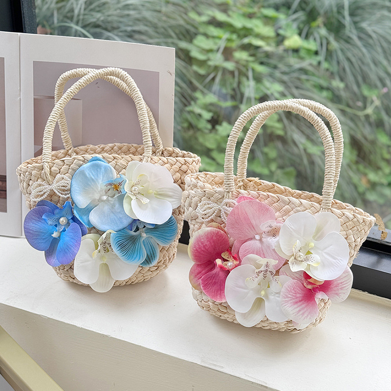 Главная страница > Тканая сумка ручной работы с цветком фаленопсиса, персонализированная женская корзина для овощей, маленькая сумка для маленькой девочки, соломенная сумка, сумка для отдыха
