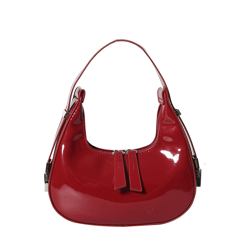 Главная страница > Трансграничная маленькая сумка женская 2024 летняя новая минималистская мода женская сумка лакированная кожа блестящие руки подмышки сумка полумесяц сумка