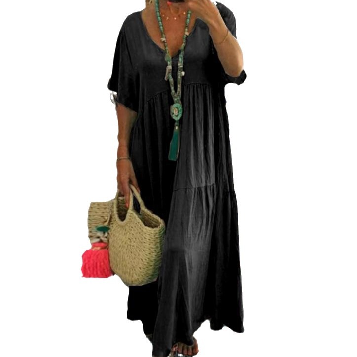Главная страница > Весенне-летнее платье 2025 года в европейском и американском стиле WISH Amazon, новое, с V-образным вырезом, асимметричное, разноцветное, разных размеров, длинное.
