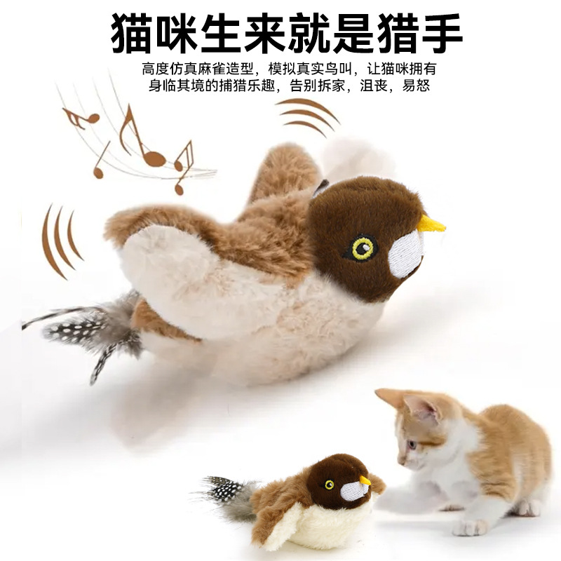 Новая плюшевая игрушка-птичка (чайка) с тремя режимами: машет крыльями, издает звуки, перезаряжаемая, самодостаточная игрушка для кошек с кошачьей мятой.