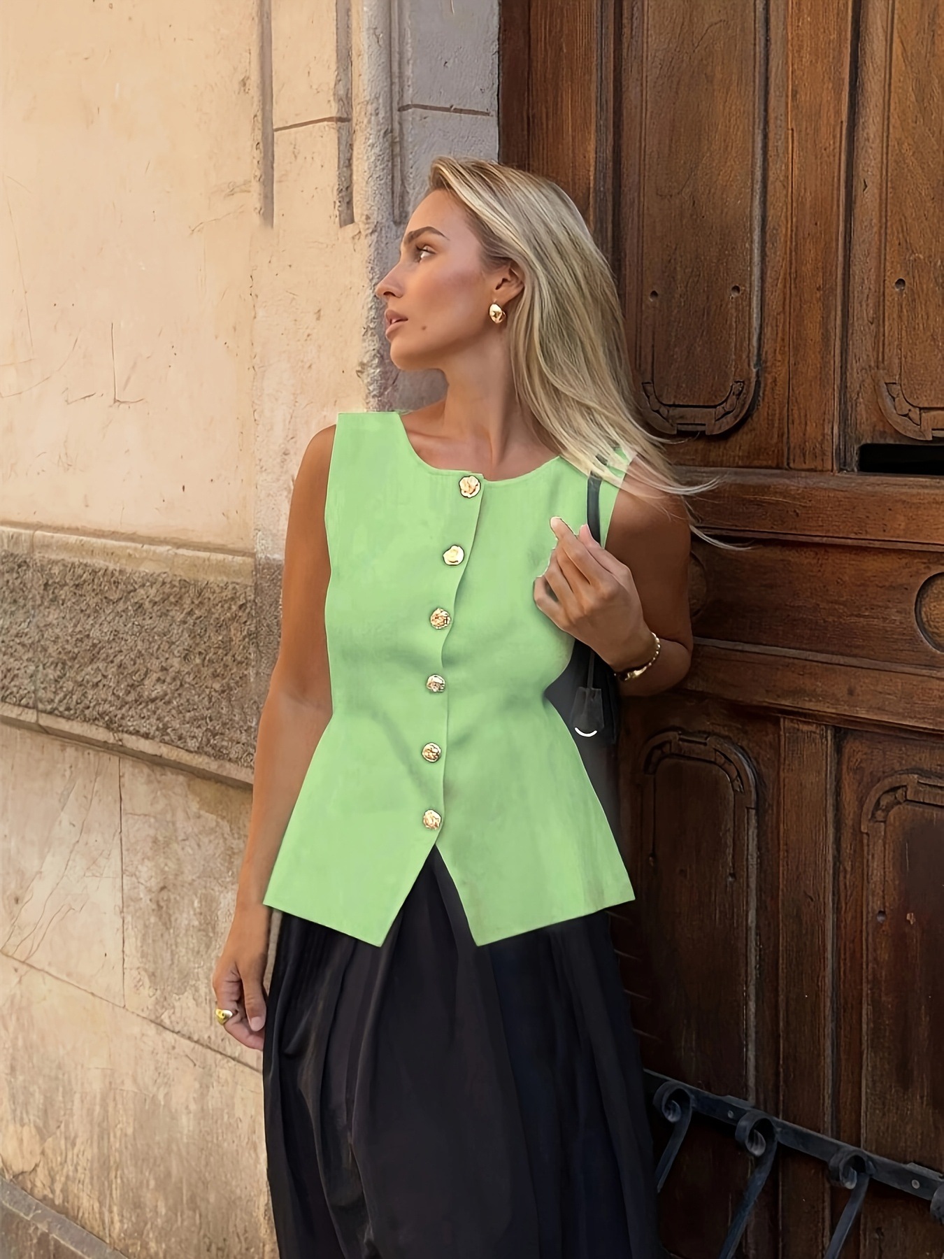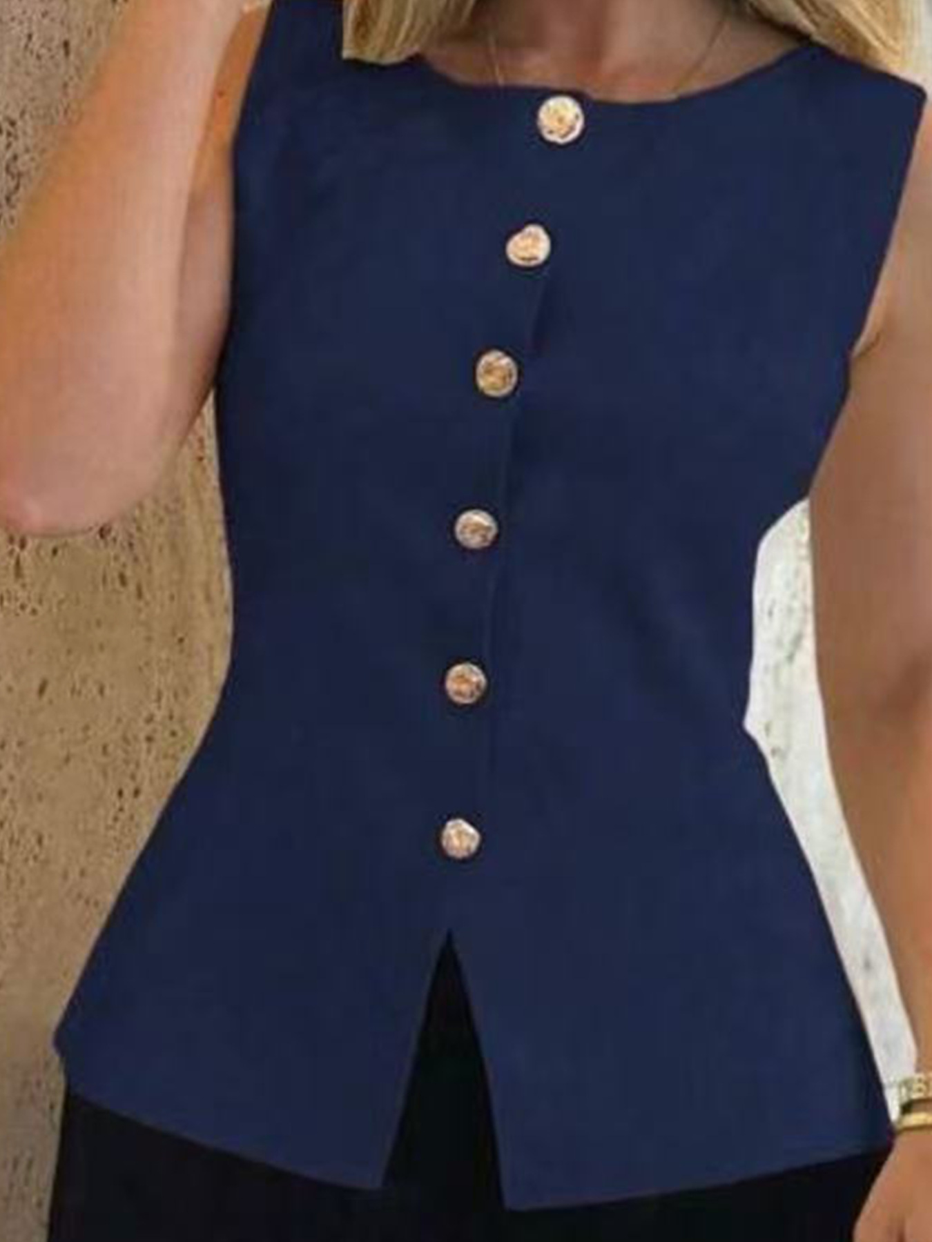 Главная страница > Женская одежда для трансграничной торговли: новый летний стиль, элегантный женский вязаный кардиган без рукавов с круглым вырезом, на пуговицах, однотонный, в европейском и американском стиле.