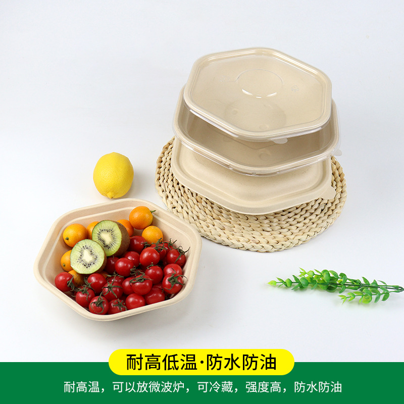 Одноразовая шестиугольная салатница, легкая коробка для упаковки еды, уменьшающая жир, производитель биоразлагаемых шестиугольных ланч-боксов