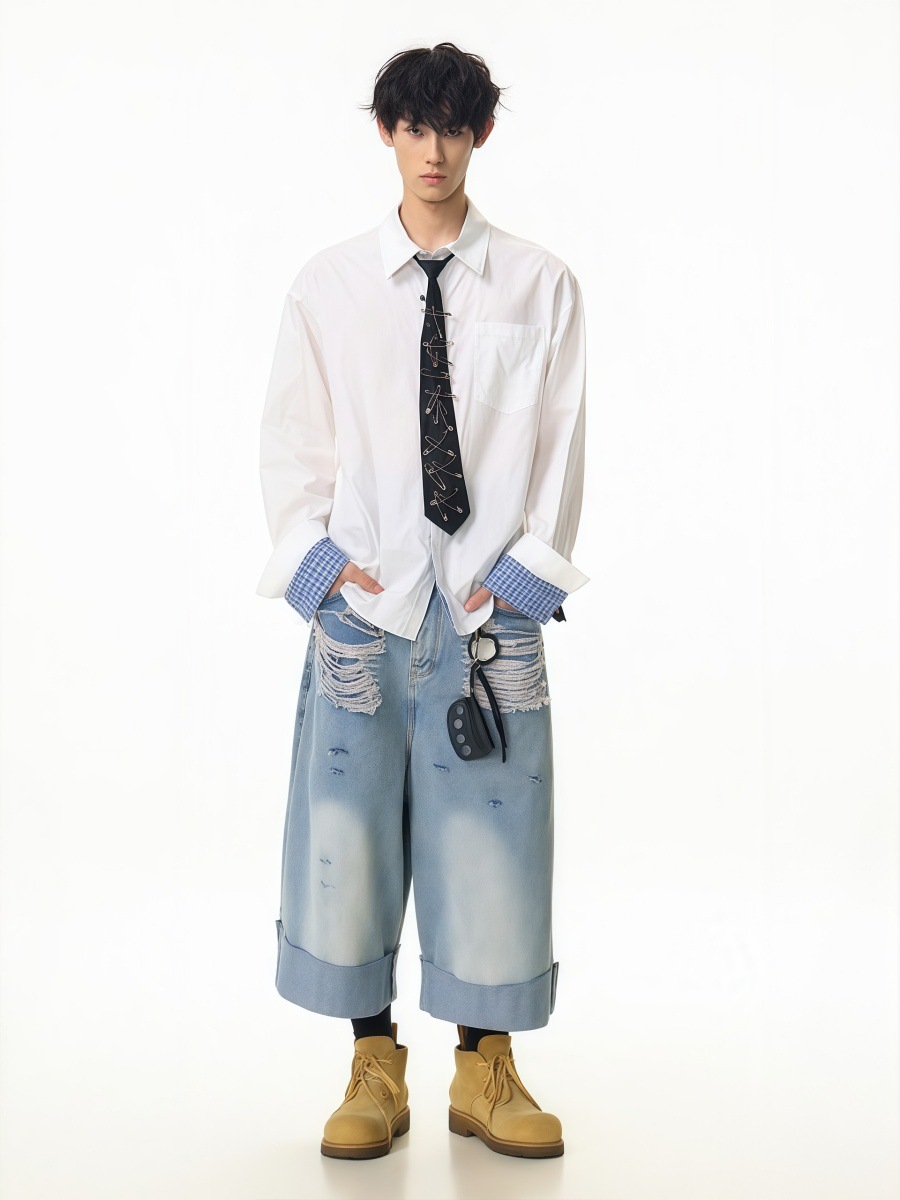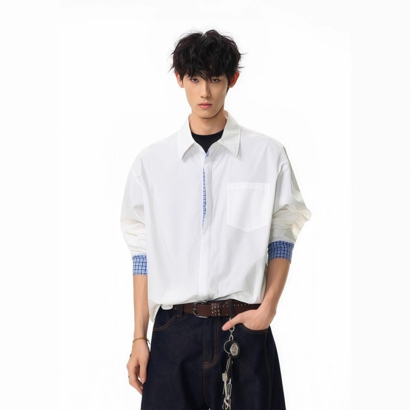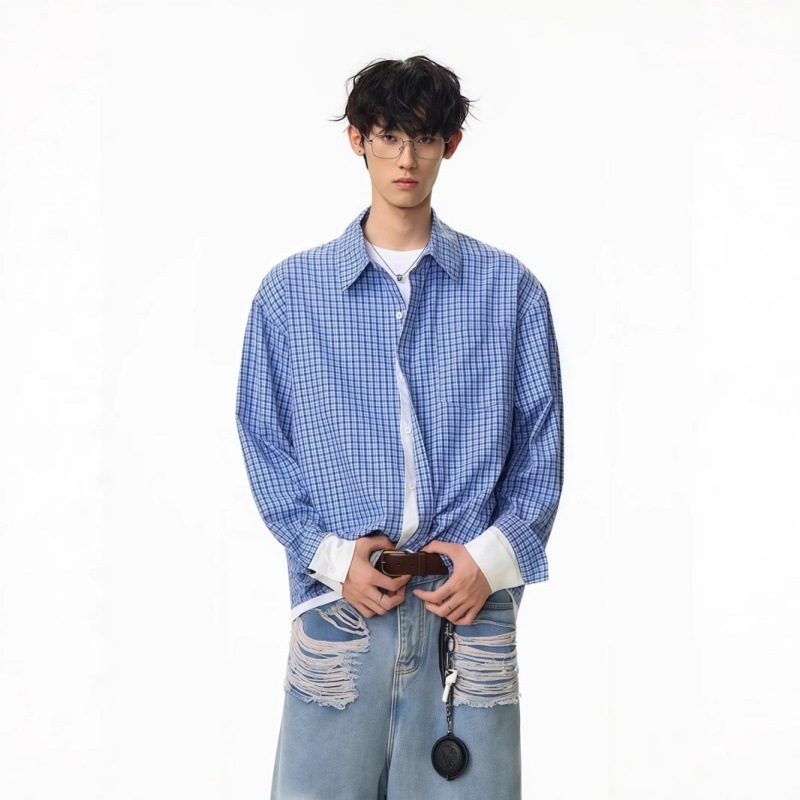 Главная страница > Мужская клетчатая рубашка из двух частей в стиле пэчворк в американском стиле, летняя свободная рубашка в ленивом стиле, универсальная куртка модного брендового дизайна.