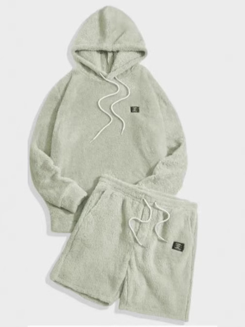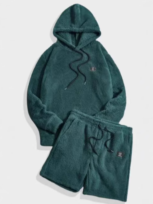 Главная страница > Зимний мужской костюм из полярного флиса, толстовка с капюшоном + шорты, теплый, удобный и повседневный стиль.