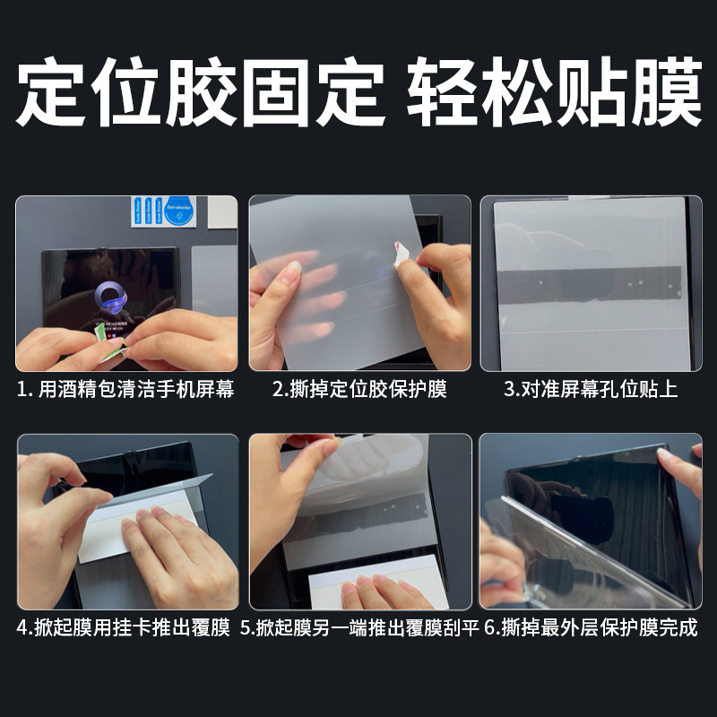- Наклейка для позиционирования [матовая гидрогелевая пленка] (внутренняя пленка для экрана) поставляется с комплектом для нанесения пленки.