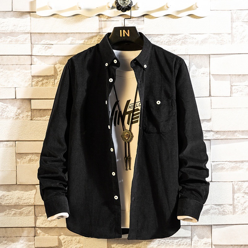 Главная страница > 2021 Новое поступление весенне-Летняя мужская рубашка с длинными рукавами Модная Вельветовая рубашка Повседневная приталенная однотонная мужская повседневная рубашка