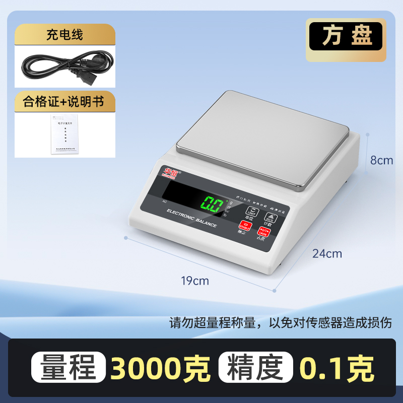 [Высокая точность] Квадратная пластина 3 кг/0,01 г, свободный вес, оснащена лотком двойного назначения.