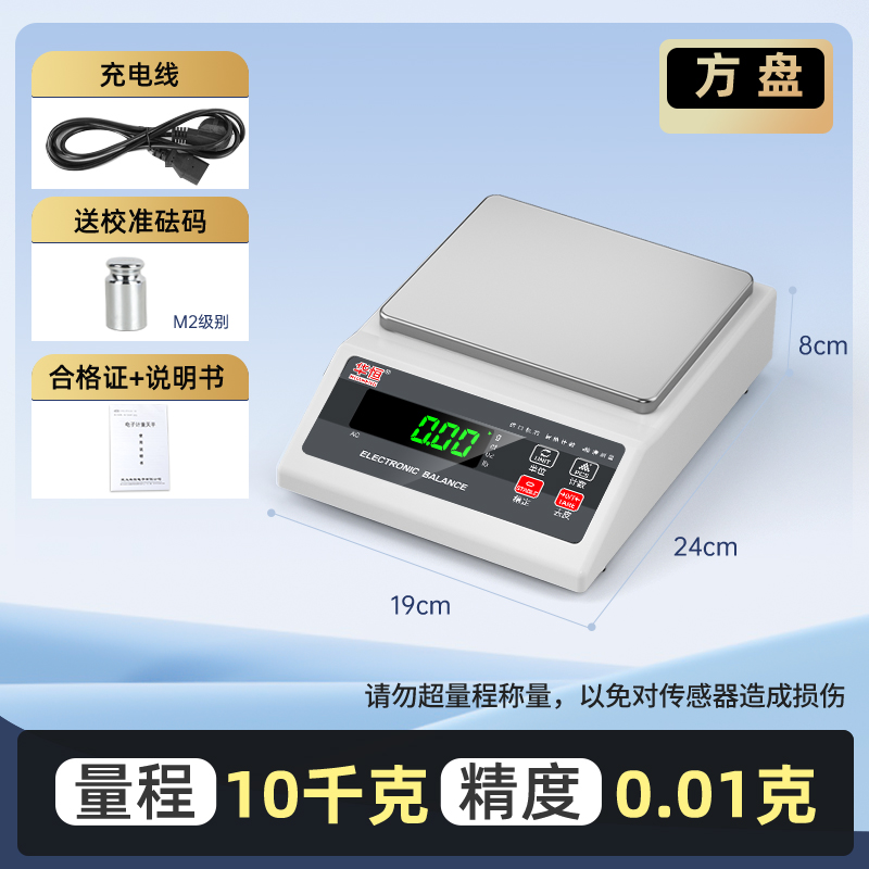 [Высокая точность] Квадратная пластина 10 кг/0,01 г, свободный вес, оснащена лотком двойного назначения.