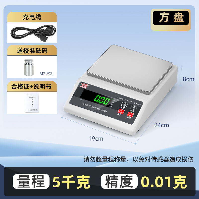 [Рекомендуется] Квадратная тарелка 5 кг 0,01 г, свободные веса, оснащена подносом двойного назначения.