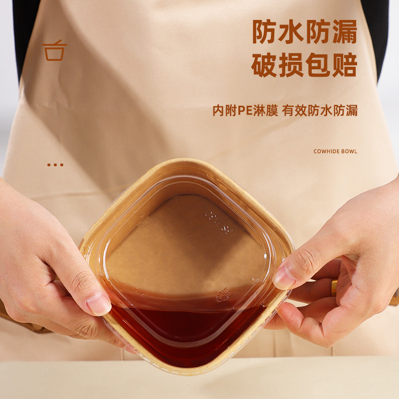 Главная страница > Одноразовый ланч-бокс из крафт-бумаги, утолщенная квадратная бумажная миска, коробка для резки фруктов с крышкой, упаковочная коробка для торта, салата и фруктов