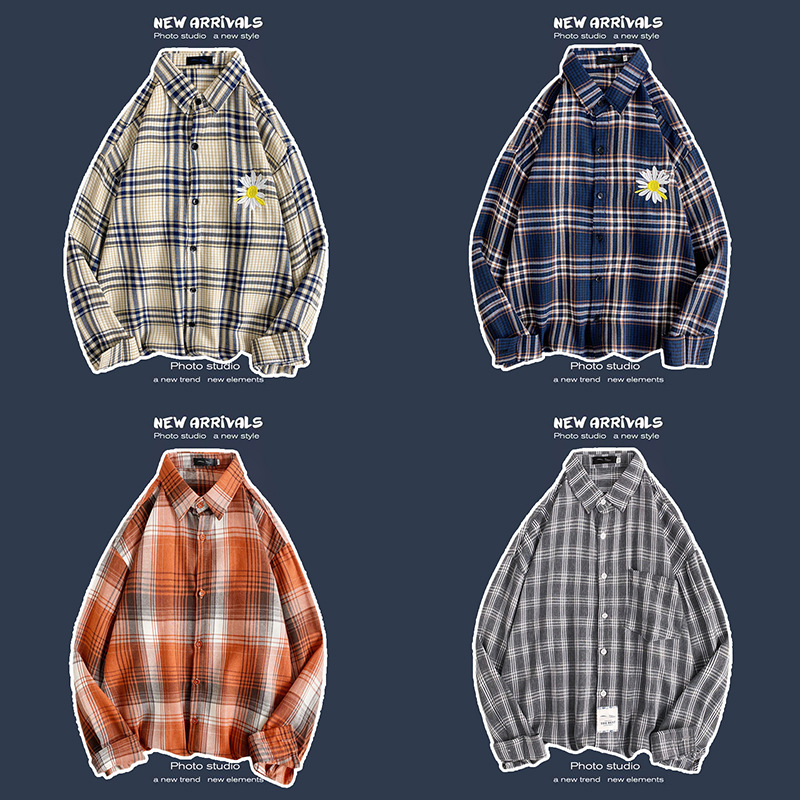 Главная страница > Весенние и осенние рубашки мужские корейские тренды повседневная свободная рубашка с длинными рукавами гонконгский стиль дикая пара ретро клетчатое пальто