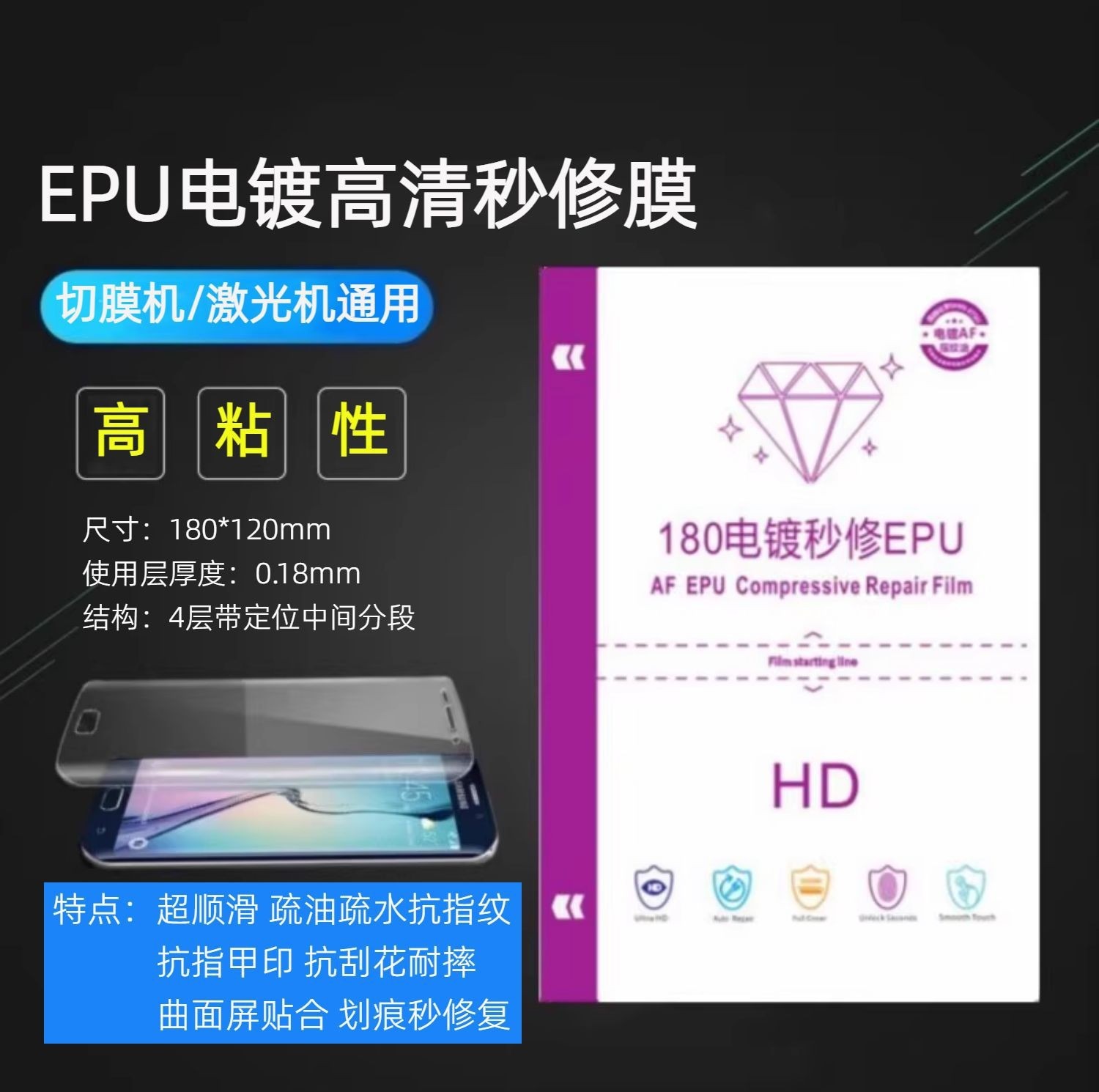 Эпю гальваническая высококачественная гидрогелевая пленка, автоматическая машина для вторичной ремонта, защита от отпечатков пальцев, защита от царапин, режущая машина, расходные материалы, мягкая пленка для изогнутого экрана мобильного телефона