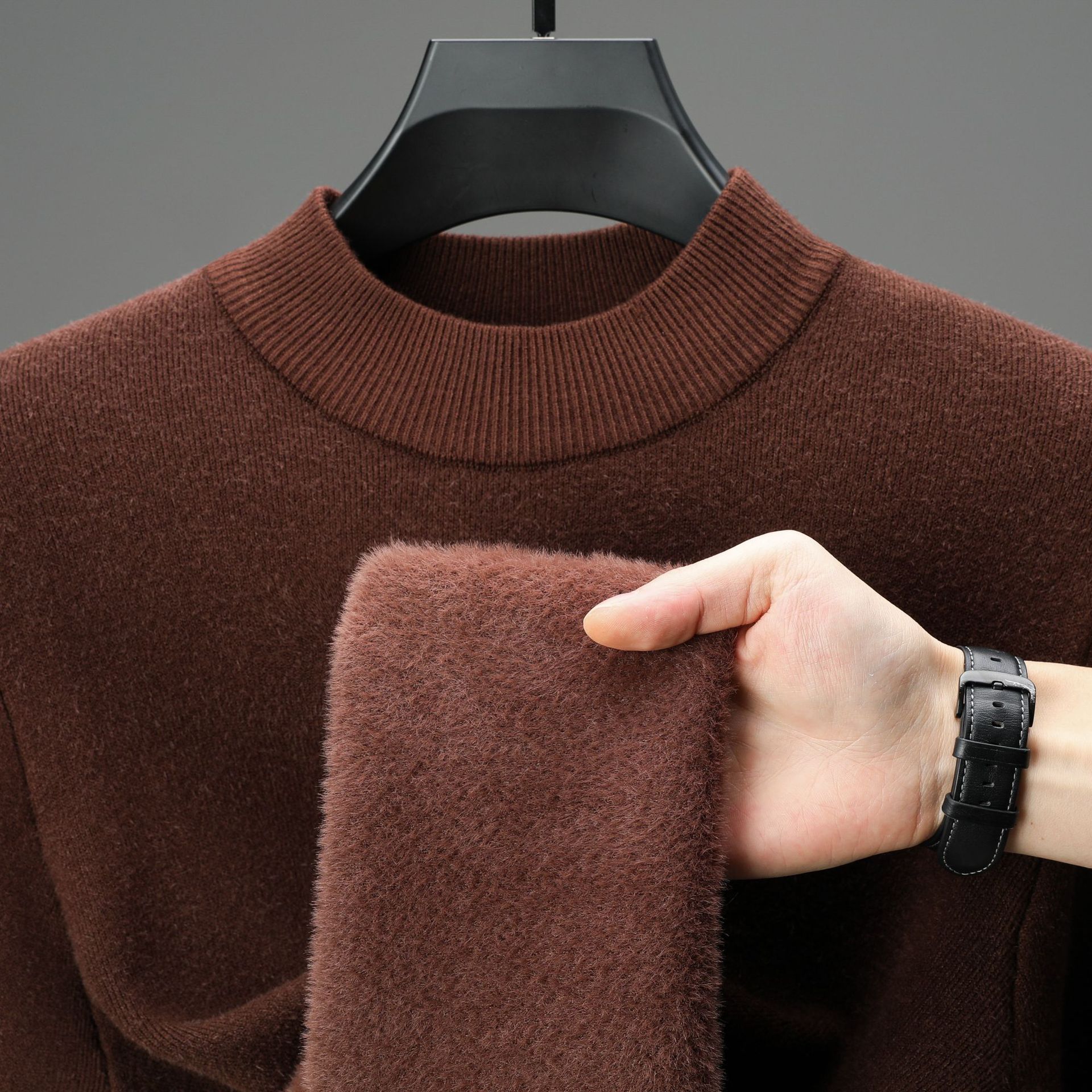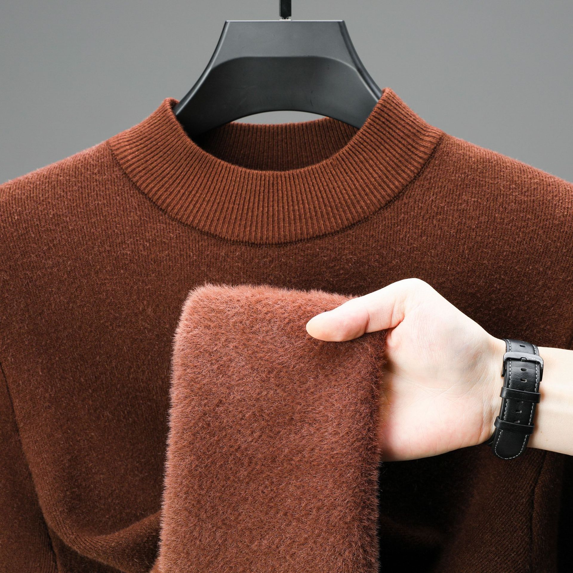 Главная страница > Осенние и зимние новые мужские кардиганы с одним плюшевым кардиганом мужские полугистого воротника с плюшевым толстым, светлым и роскошным вязаным свитером