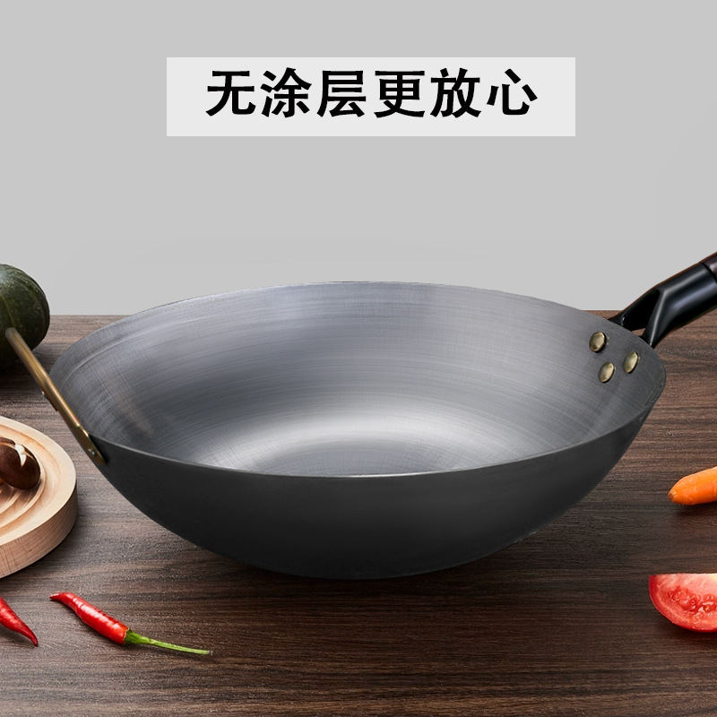 Главная страница > Старинный железный вок для шеф-повара, антипригарная сковорода без покрытия, домашняя кухня, традиционный железный вок ручной работы, производитель