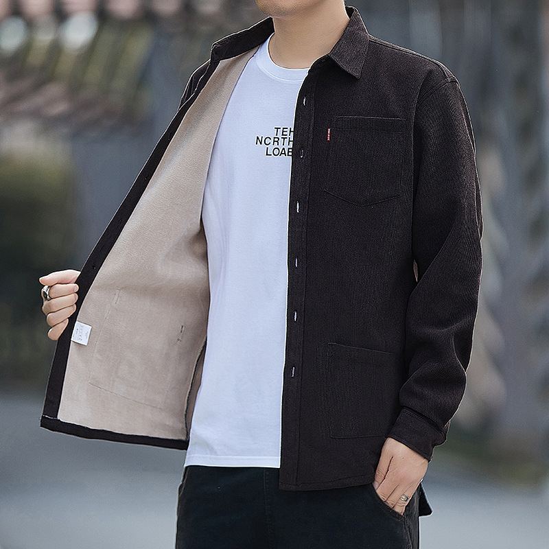 Главная страница > Мужская Вельветовая утепленная куртка-рубашка на флисовой подкладке, Новый Повседневный теплый свободный универсальный топ с несколькими карманами