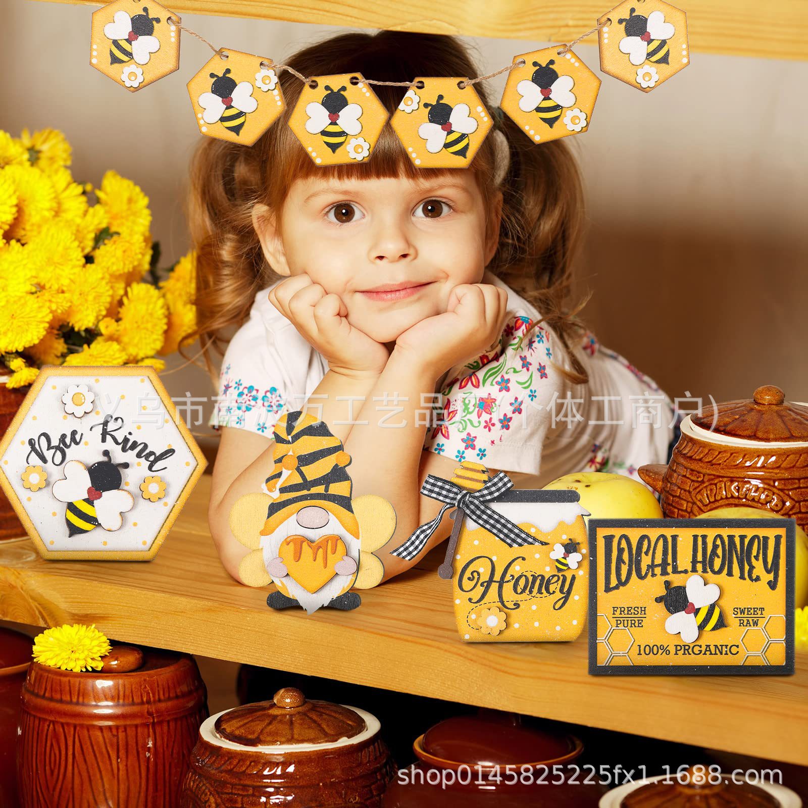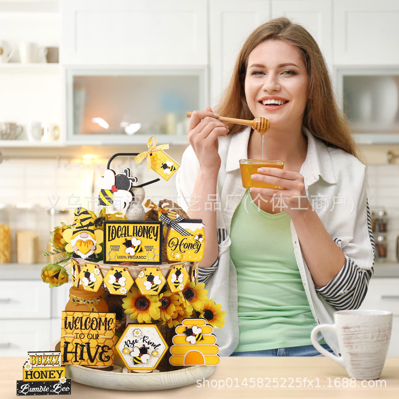 15 шт., летний многоуровневый декор для подноса, слой медовой пчелы, деревенский деревянный знак, весенний декор, поднос, знак