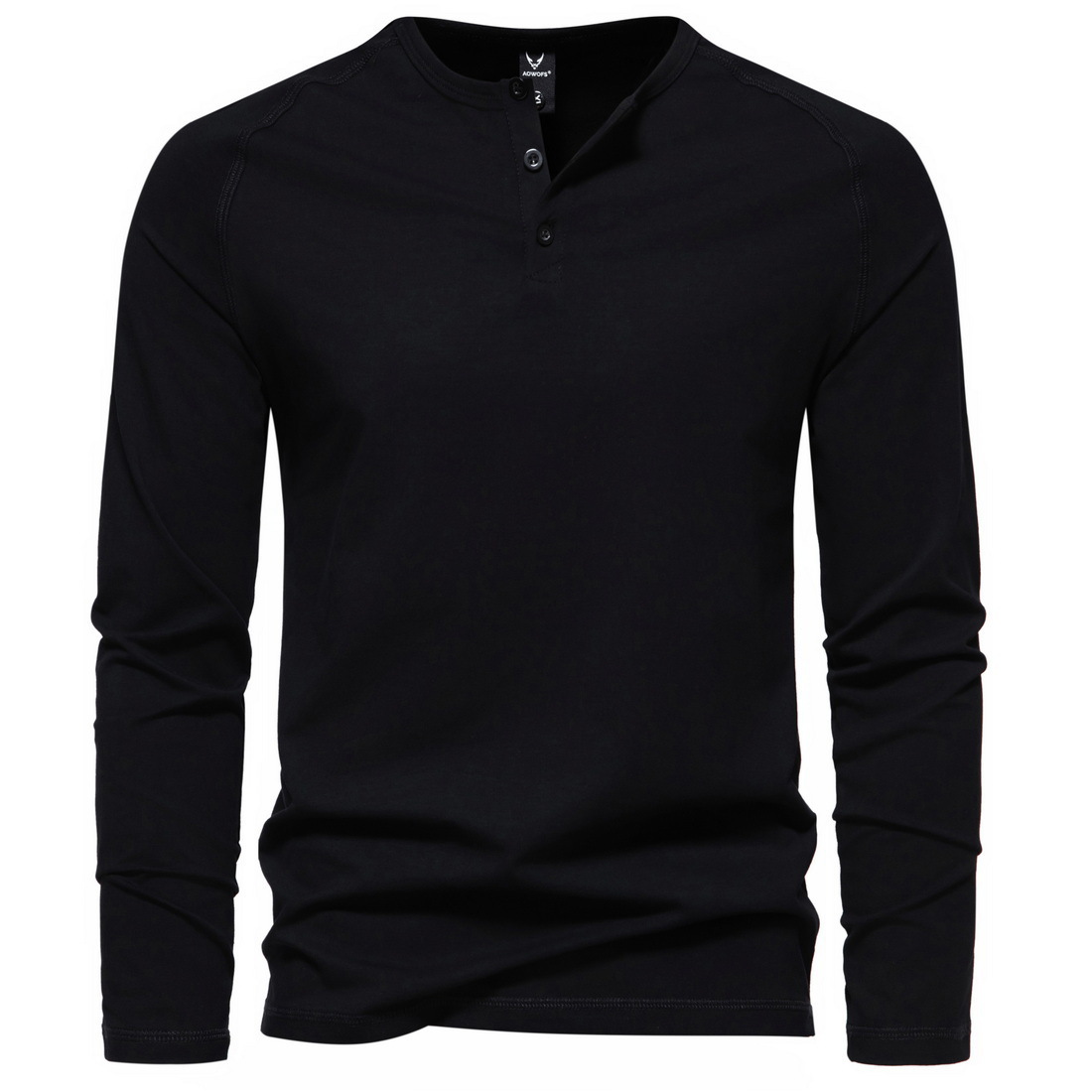 Главная страница > 2023 осень новый 220 г хлопчатобумажный мужской модный тренд Генри воротник футболка с длинным рукавом повседневная сплошная рубашка
