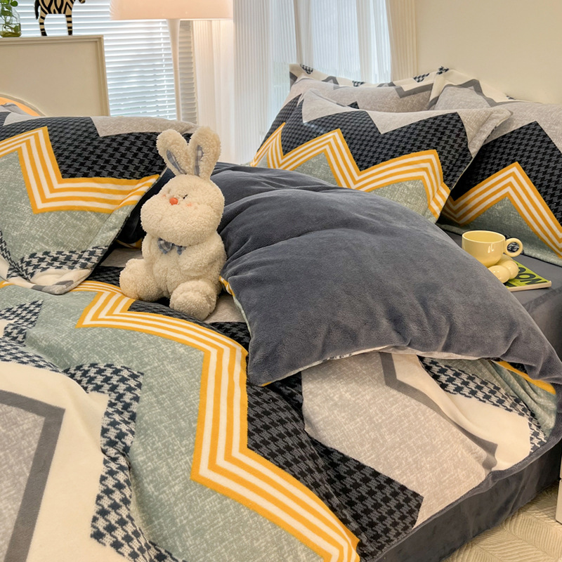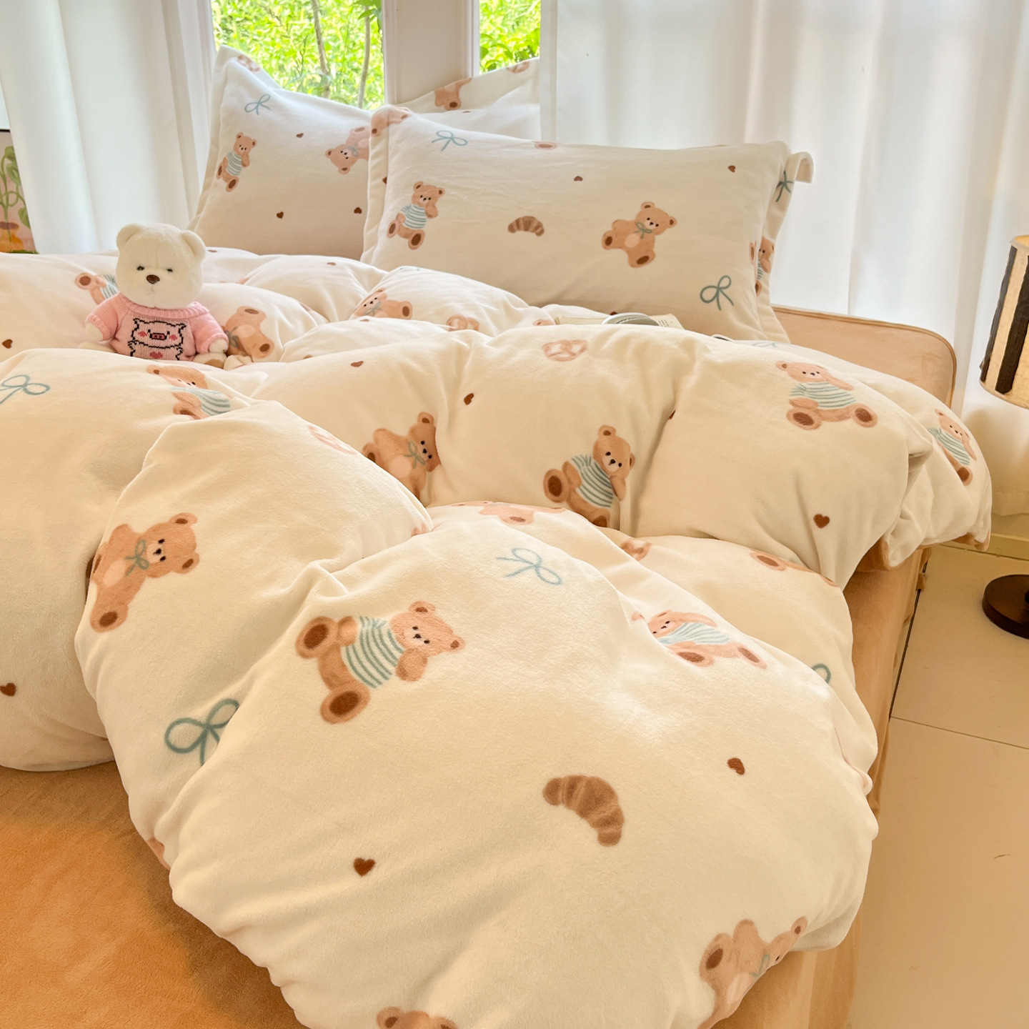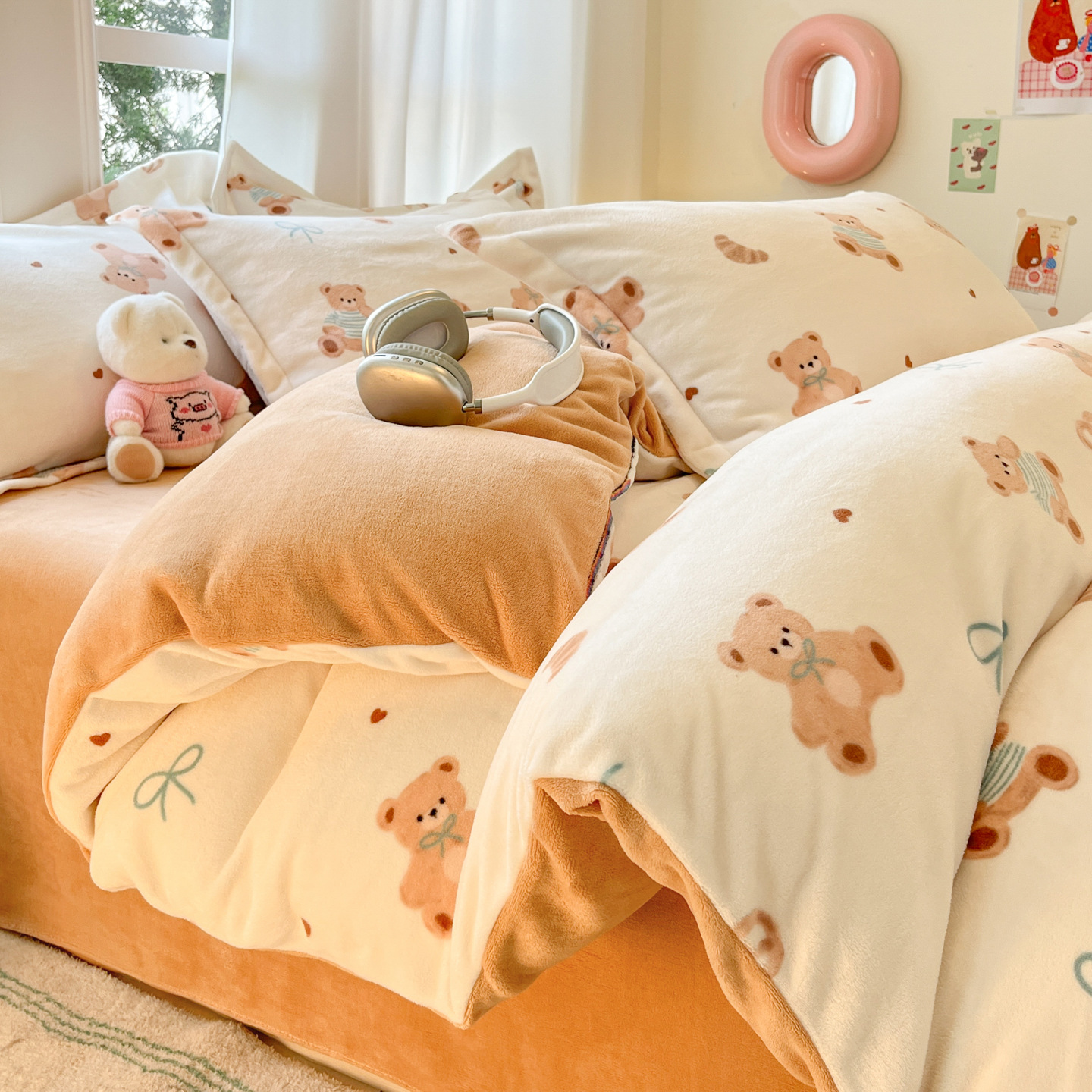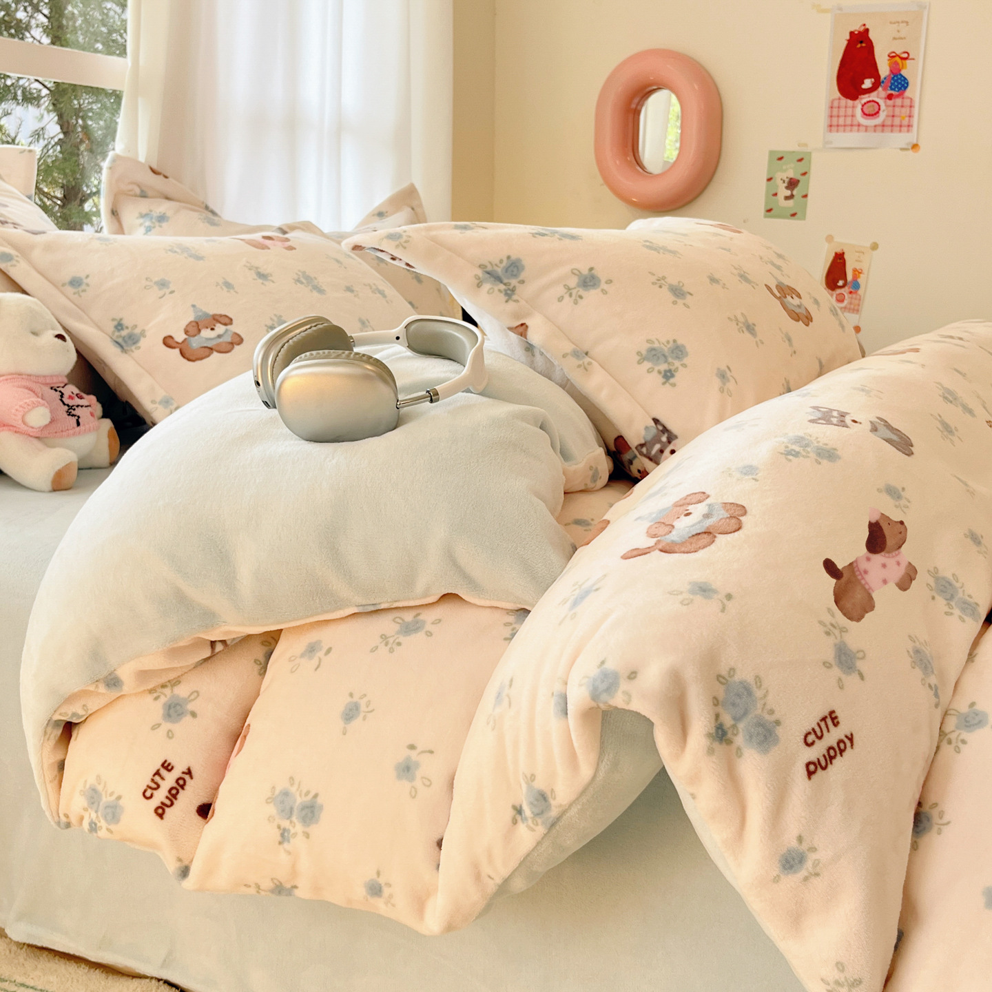Главная страница > Комплект из четырех предметов из молочного вельвета класса А, зимнее постельное белье из кораллового флиса и пододеяльник, комплект из трех предметов из Наньтунского флиса с пододеяльником, теплый.
