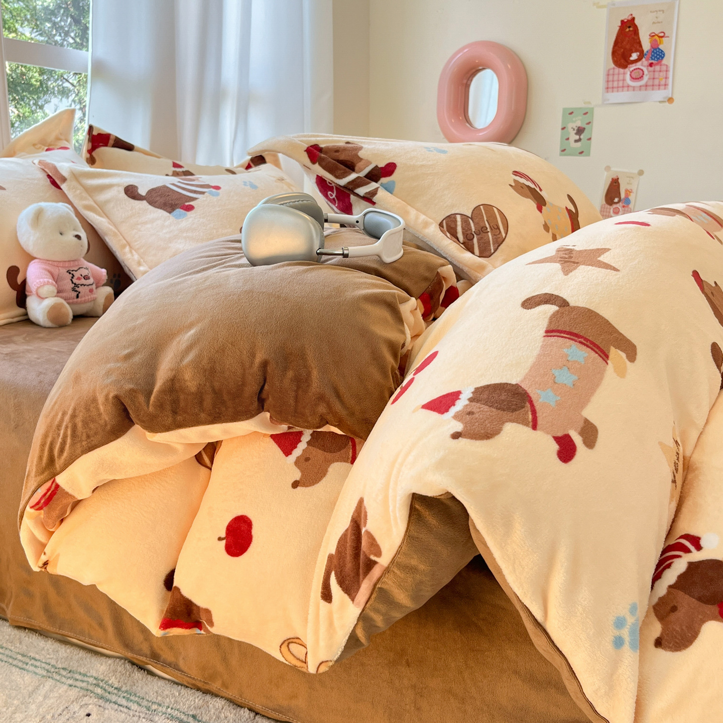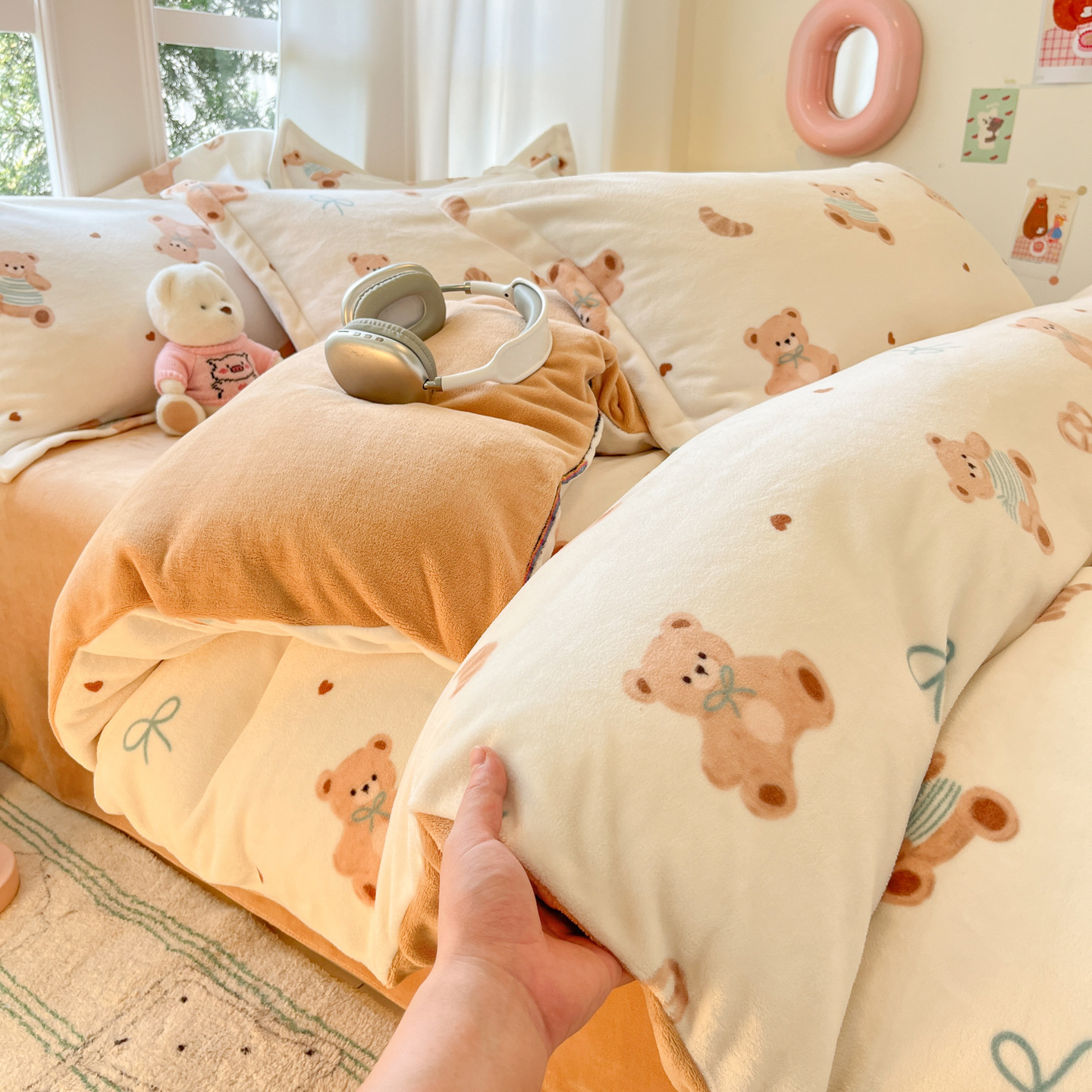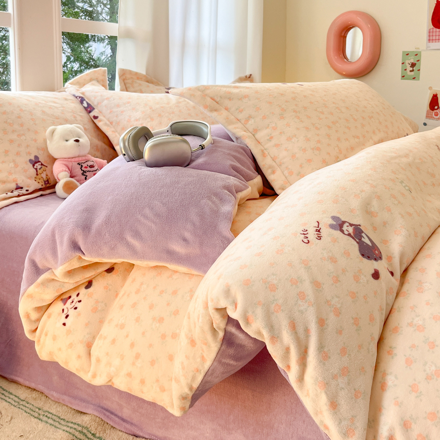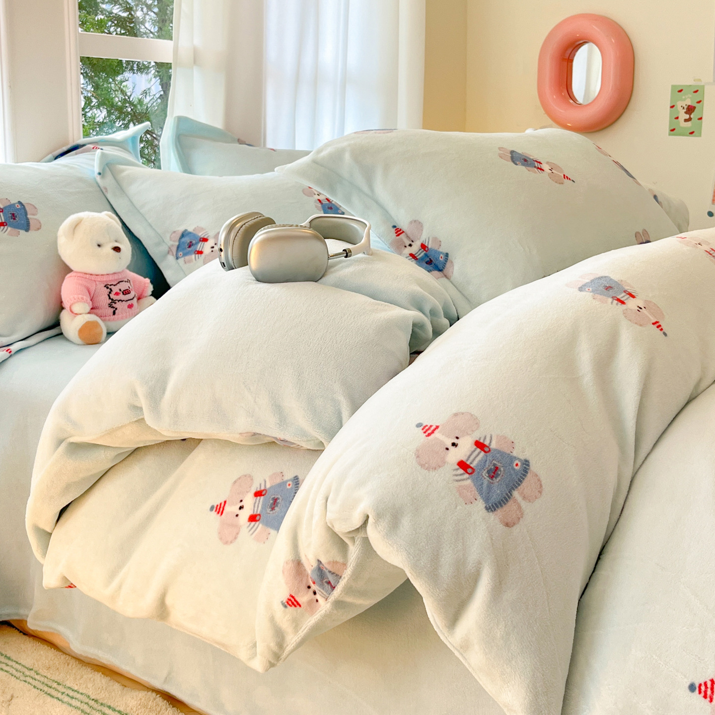 Главная страница > Комплект из четырех предметов из молочного вельвета класса А, зимнее постельное белье из кораллового флиса и пододеяльник, комплект из трех предметов из Наньтунского флиса с пододеяльником, теплый.