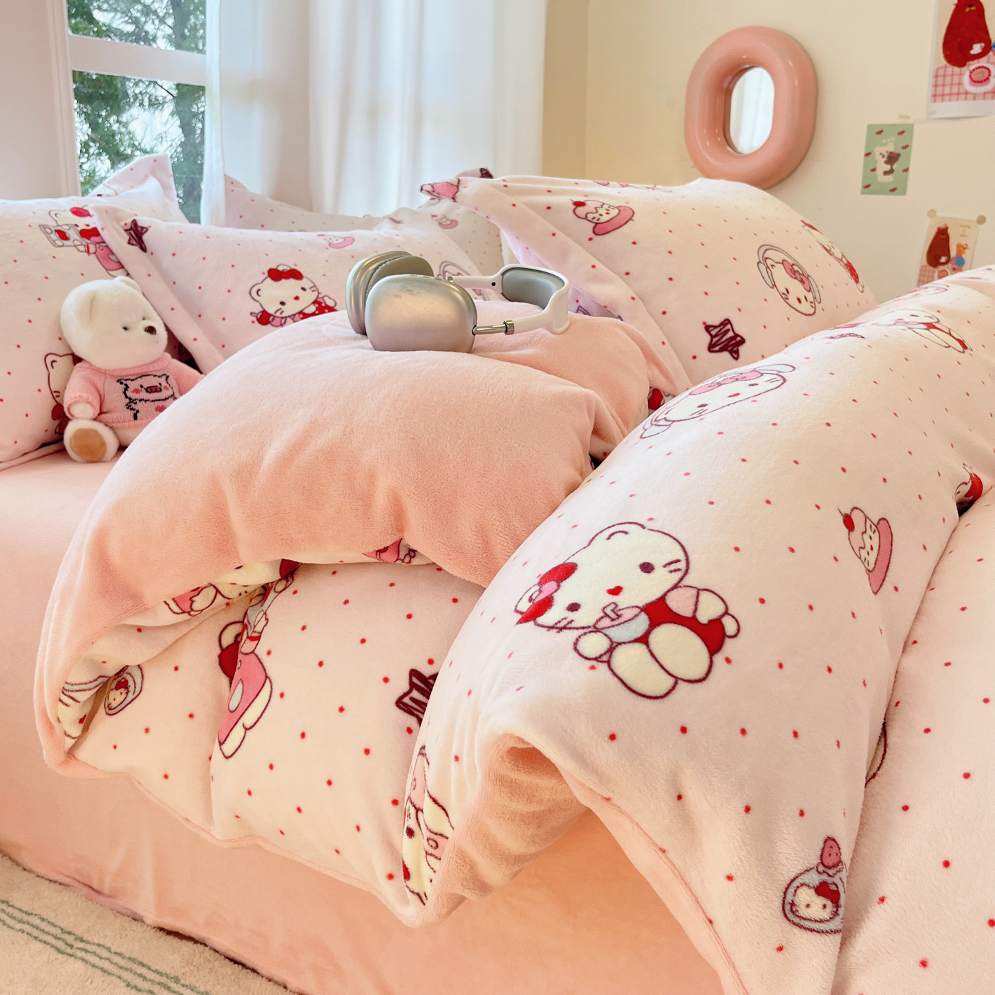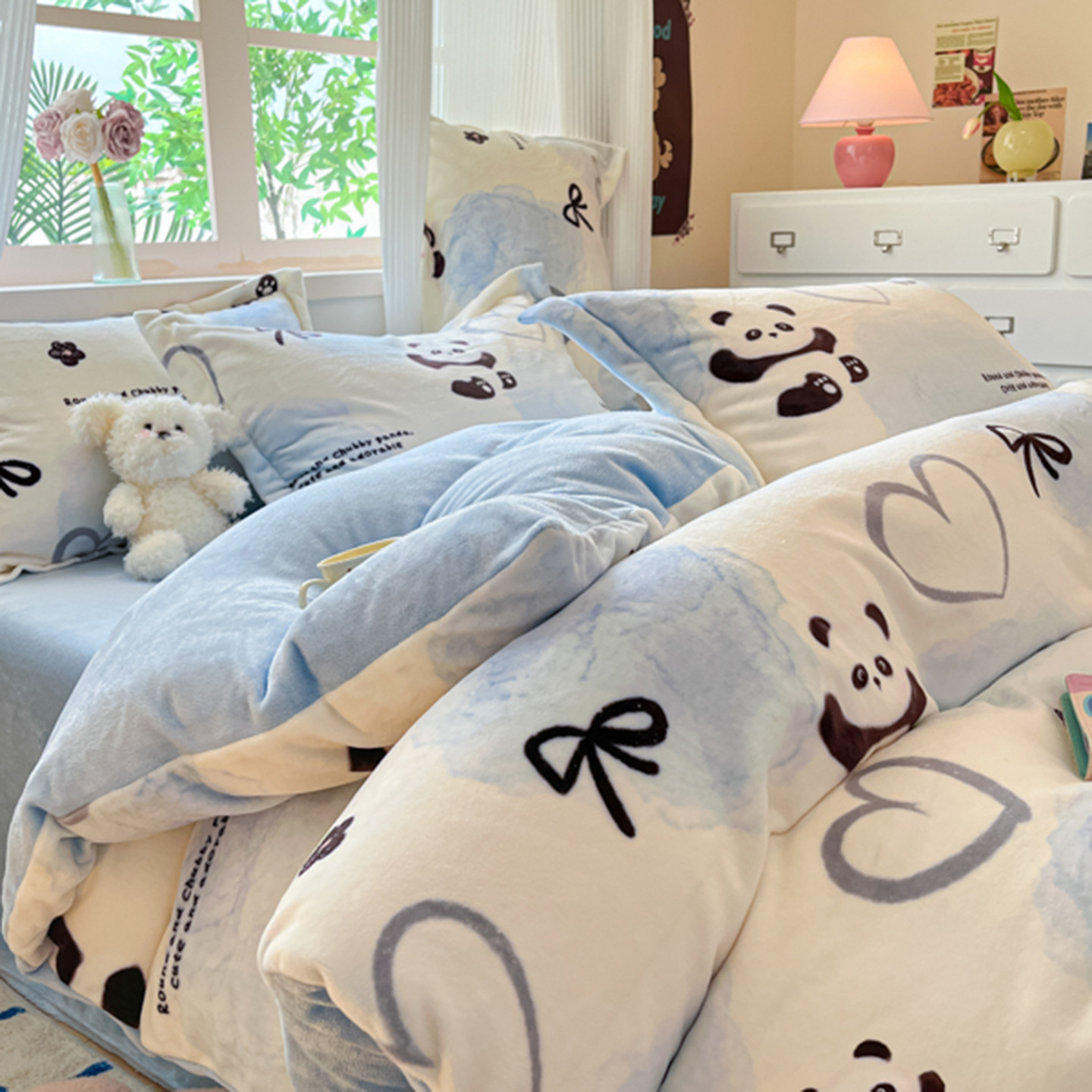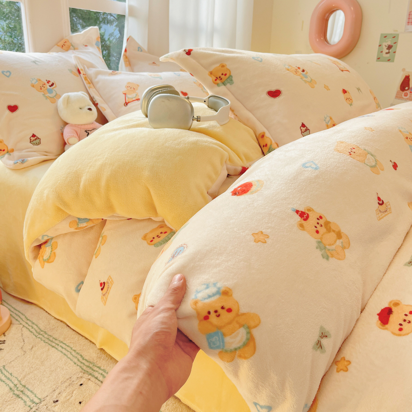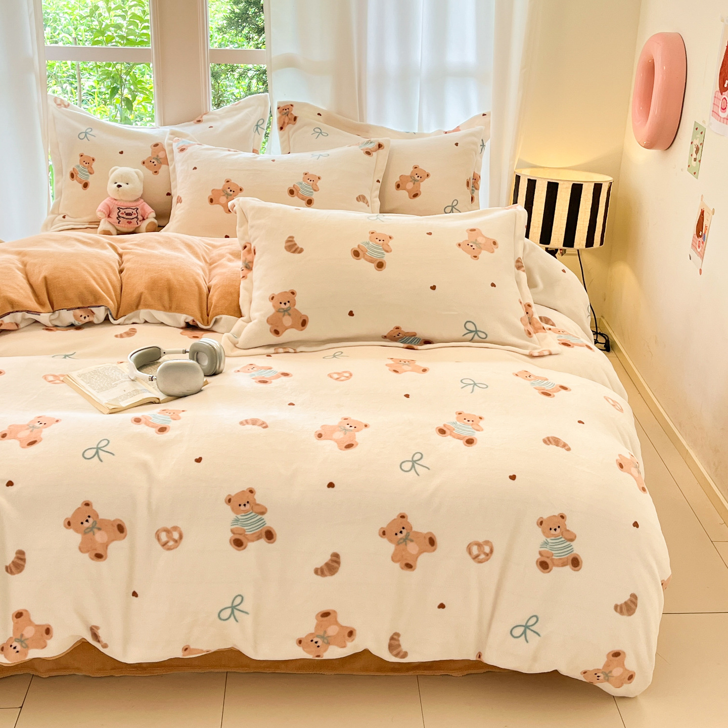 Главная страница > Комплект из четырех предметов из молочного вельвета класса А, зимнее постельное белье из кораллового флиса и пододеяльник, комплект из трех предметов из Наньтунского флиса с пододеяльником, теплый.