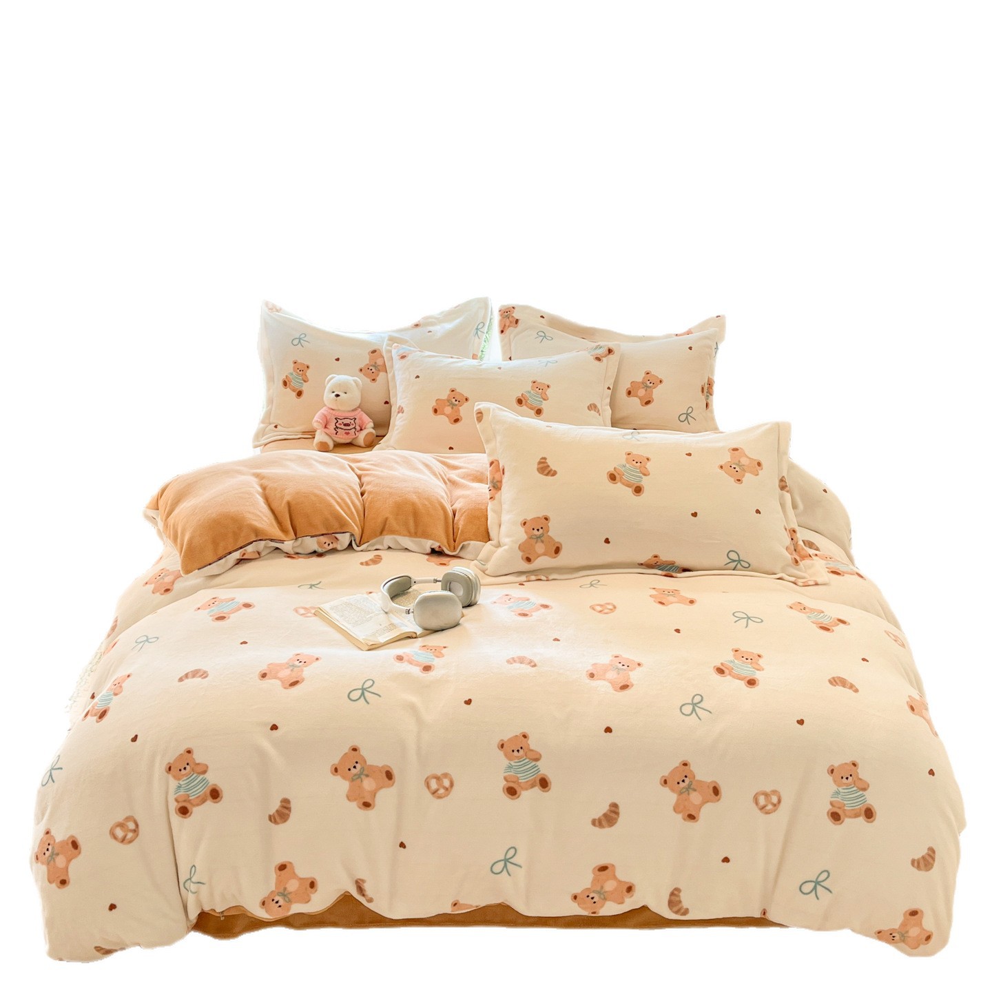 Комплект из четырех предметов из молочного вельвета класса А, зимнее постельное белье из кораллового флиса и пододеяльник, комплект из трех предметов из Наньтунского флиса с пододеяльником, теплый.
