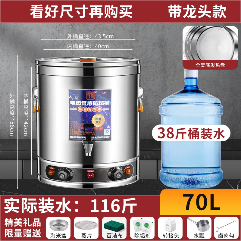 [Каша/тушеная вода] 70 л с краном [Двойной контроль температуры] [304 с полным дном]
