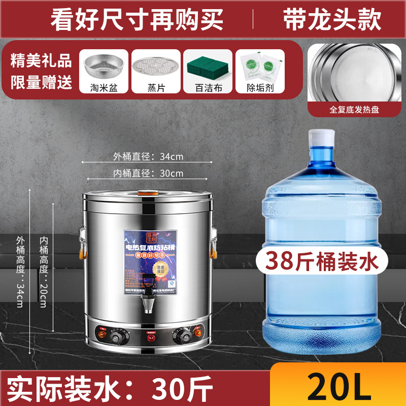 [Каша/тушеная вода] 20 л с краном [Двойной контроль температуры] [304 с полным дном]