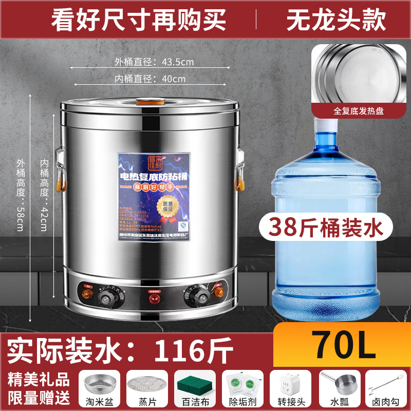 [Каша/тушеная вода] 70 л без крана [Двойной контроль температуры] [304 с полным дном]