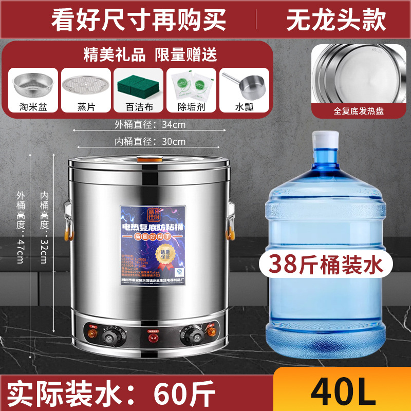 [Каша/тушеная вода] 40 л без крана [Двойной контроль температуры] [304 с полным дном]