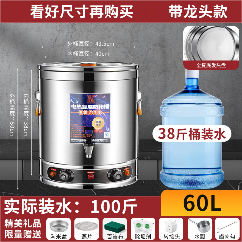 [Каша/соленая вода] 60 л с краном [Двойной контроль температуры] [304 с полным дном]