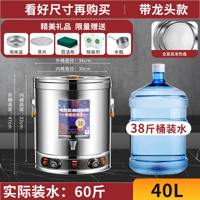 [Каша/соленая вода] 40 л с краном [Двойной контроль температуры] [304 с полным дном]