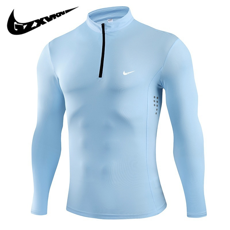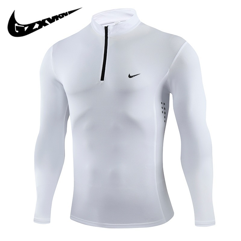 Главная страница > Мужская футболка с длинными рукавами для фитнеса, весенне-осенняя спортивная эластичная быстросохнущая одежда для бега, спортивная однотонная тренировочная одежда с воротником-стойкой и полумолнией