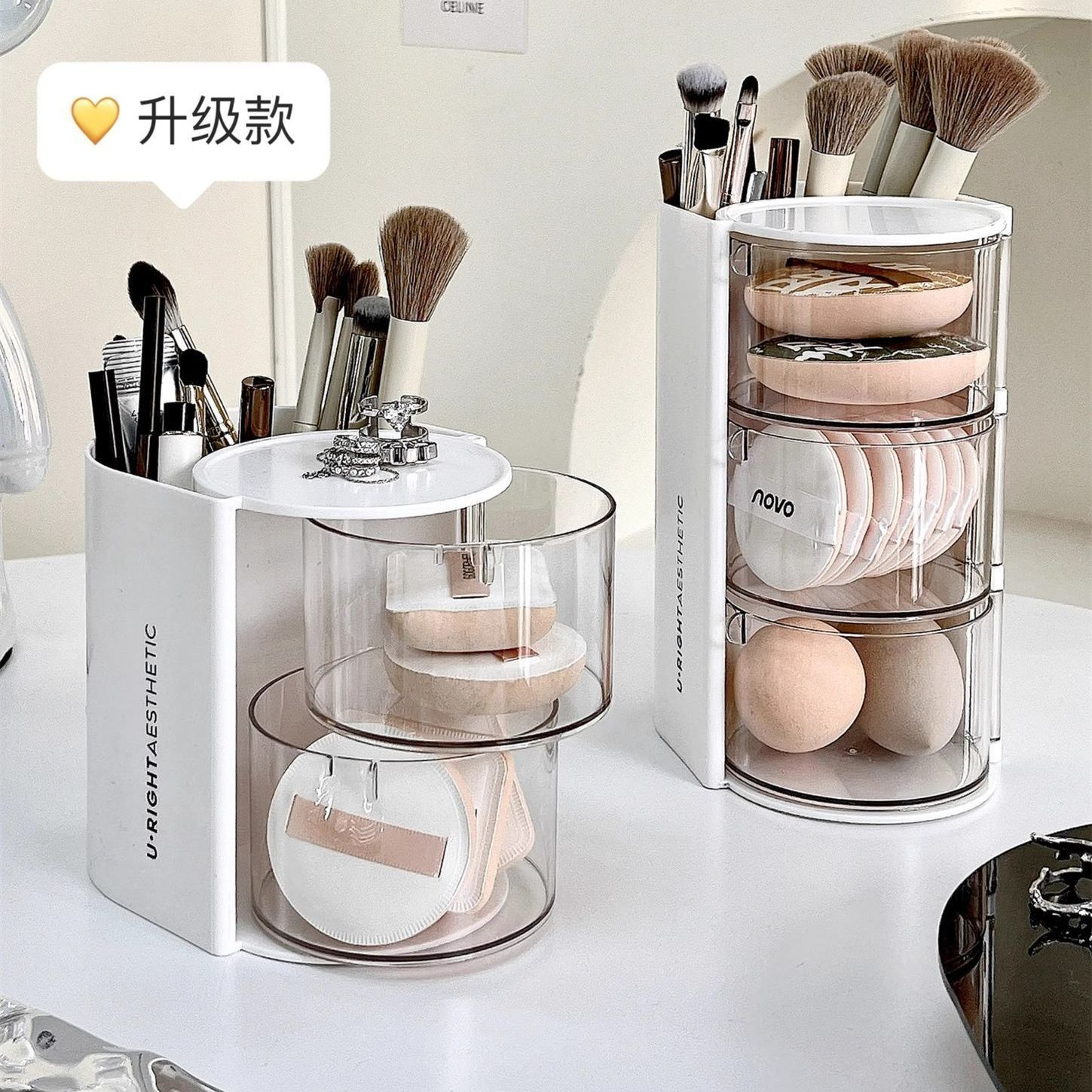 [Пуховка + вращающийся ящик для хранения кистей для макияжа] Двухслойный белый цвет большой емкости