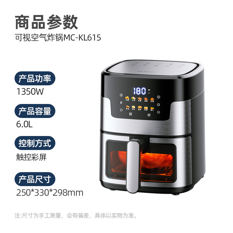 Mikaro MC-KL615 бытовая многофункциональная фритюрница большой емкости 6 л, машина для приготовления картофеля фри, визуальная фритюрница, электрическая фритюрница