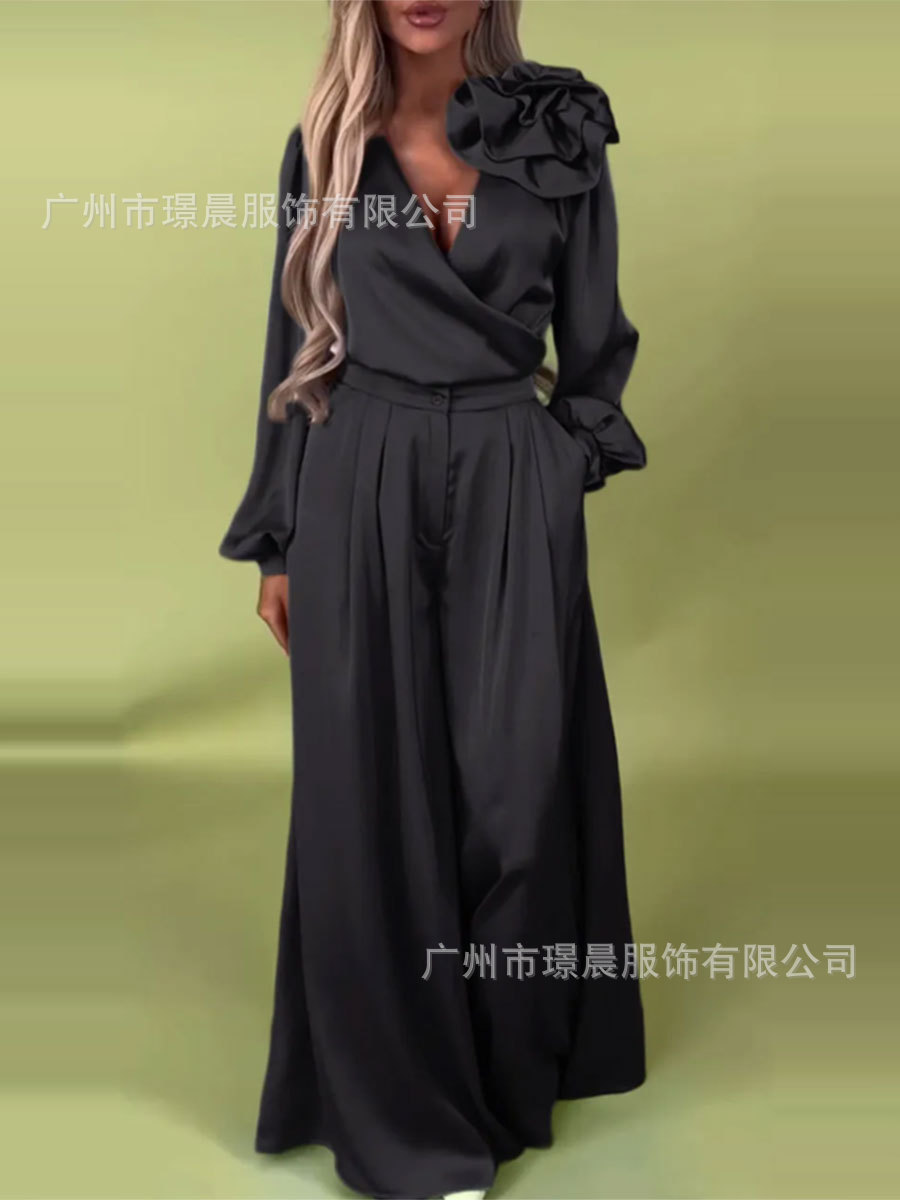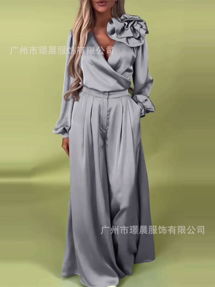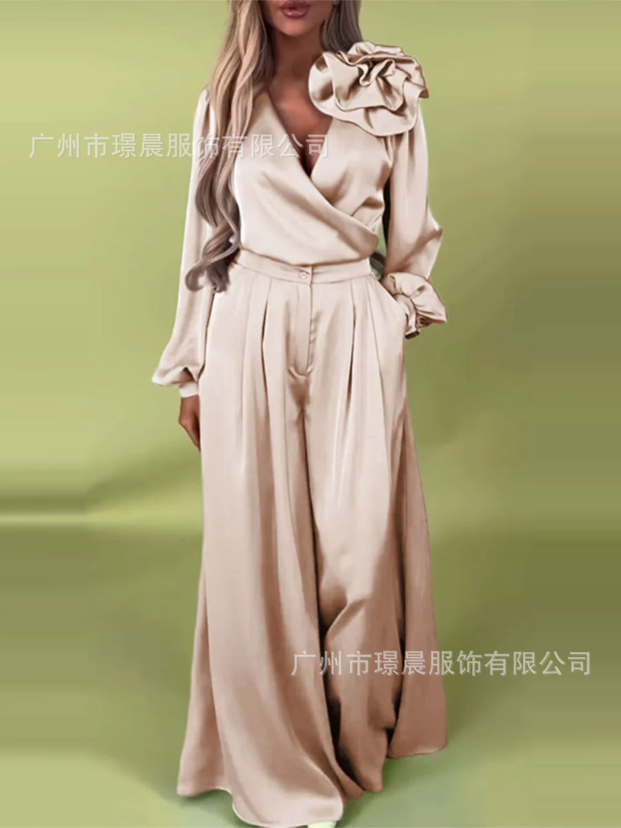 Главная страница > 2025 весна Amazon Independent Station Внешняя торговля женская одежда Роскошный элегантный V-образный вырез атласный топ с длинными рукавами