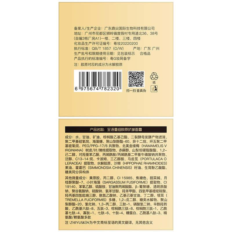 Для сленги рекомбинантный коллаген против морщин крем маленькая золотая бутылка увлажняющая и осветляющая морщины, наполненная молочным белком