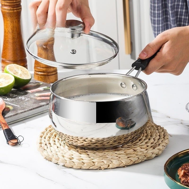 Главная страница > Кастрюля для молока из нержавеющей стали, утолщенная и углубленная, бытовая кастрюля для горячего молока, соевого молока, каши, супа, детская пищевая добавка, индукционная плита, маленькая кастрюля