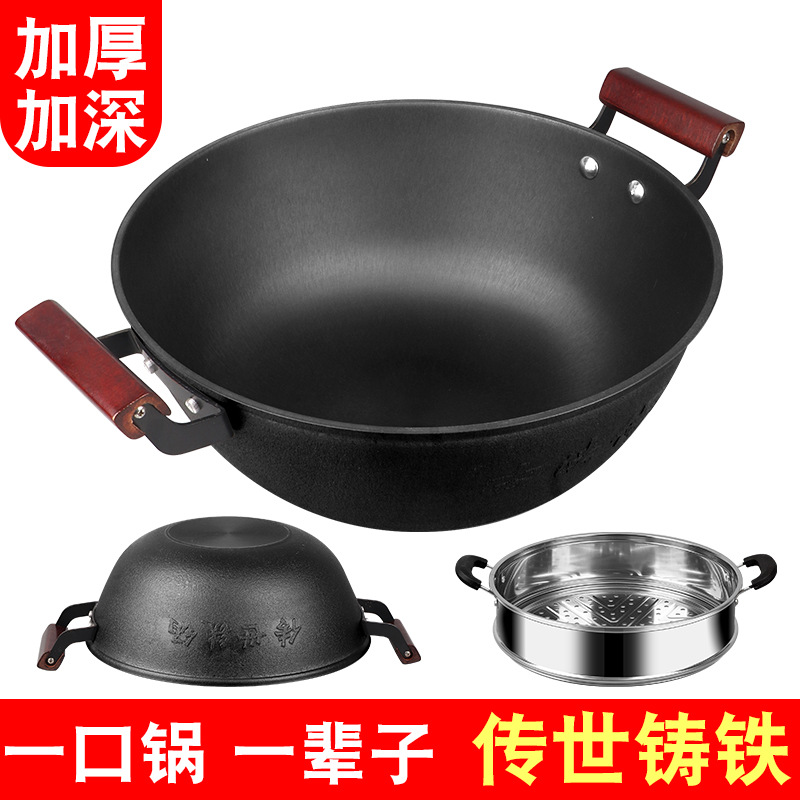 Старомодная кастрюля с плоским дном чугунная вока Домашняя большая индукционная плита Газовая плита Бинауральная железная сковорода без покрытия