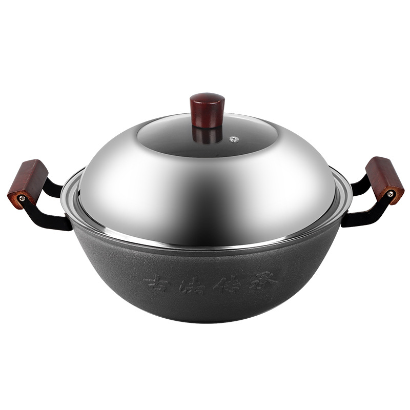 Главная страница > Старомодная кастрюля с плоским дном чугунная вока Домашняя большая индукционная плита Газовая плита Бинауральная железная сковорода без покрытия