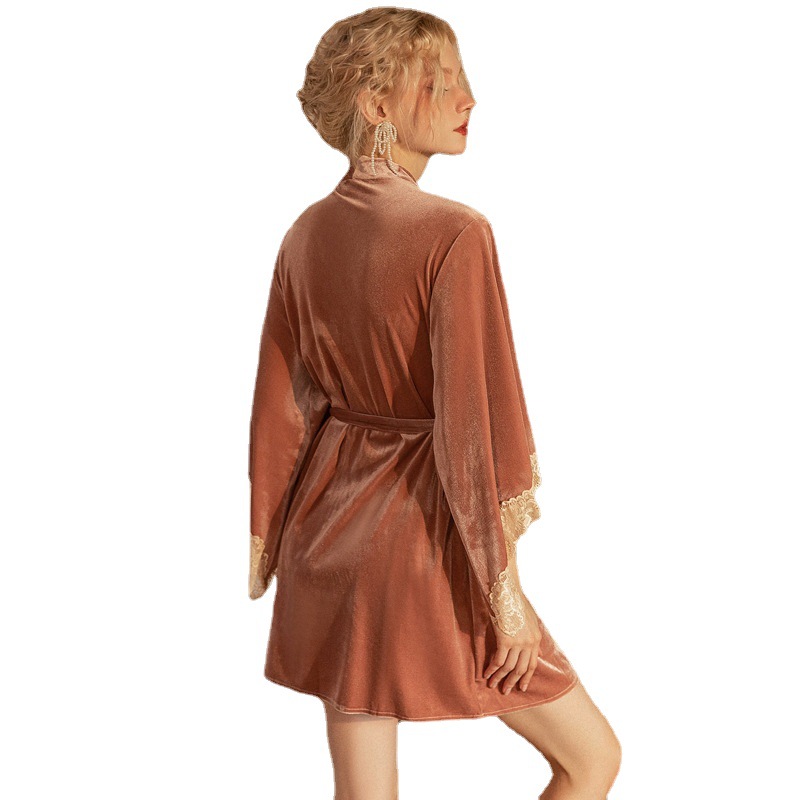 Главная страница > Европейская и американская стильная однотонная бархатная ночная рубашка, высококачественные рукава с кружевными вставками, свободная одежда для сна, домашняя одежда, халат, верхняя одежда, модная.