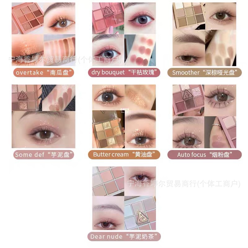 Главная страница > [Официальный подлинный] Корея 3ce Jiuonggong сетка теней для век диск overtake оранжево-коричневый матовый жемчуг долговечный 9 цветов