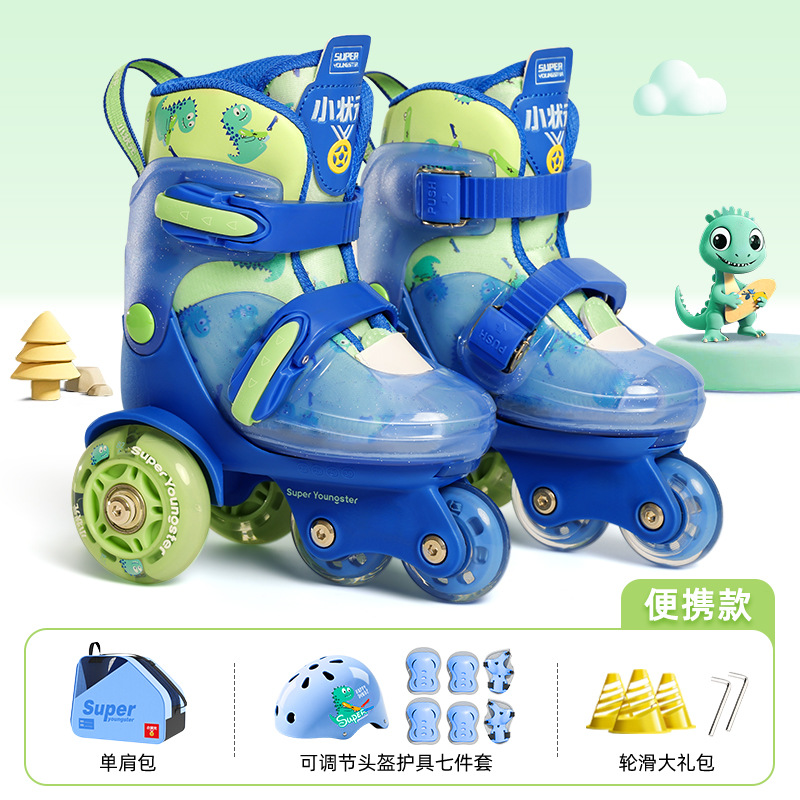 Сине-холодная вспышка «Маленький динозавр» [Регулируемый шлем + утолщенное защитное снаряжение, комплект из 6 предметов + портативная сумка через плечо]