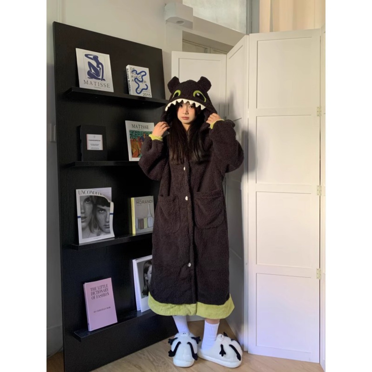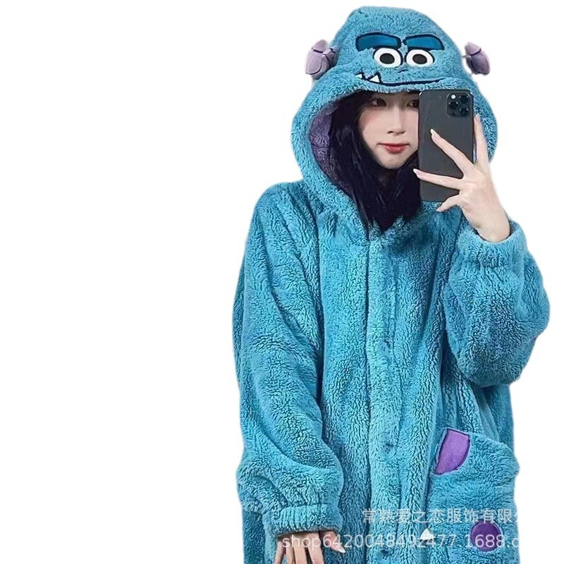 Главная страница > Ночная рубашка с вышивкой зимняя Длинная шерстяная Удобная хлопковая бархатная Домашняя одежда Meilti с большими глазами утолщенная верхняя одежда синяя Пижама