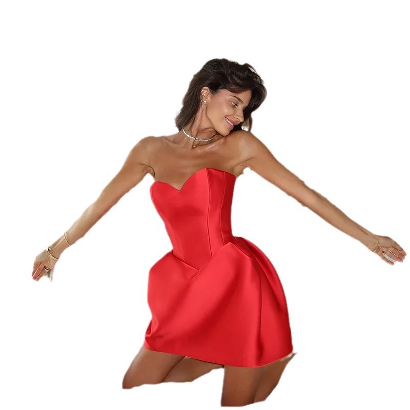 Главная страница > Европейские и американские трансграничные 2024 осенние и зимние женские платья темпераментные элегантные красные платья с плечами плиссированные платья с подолом