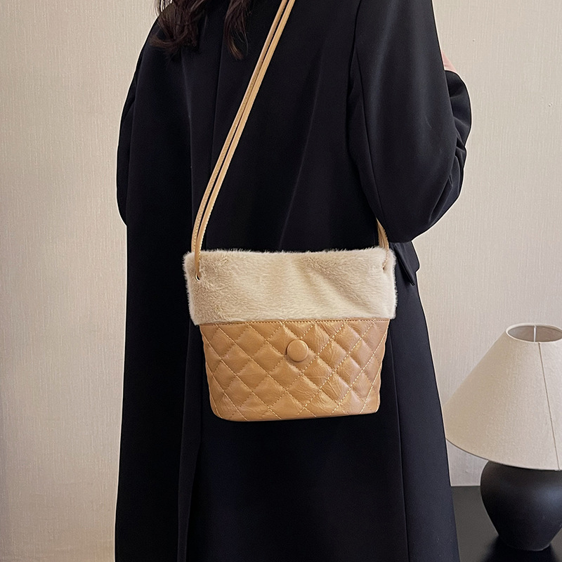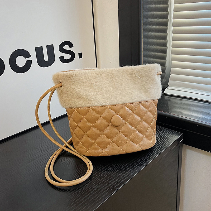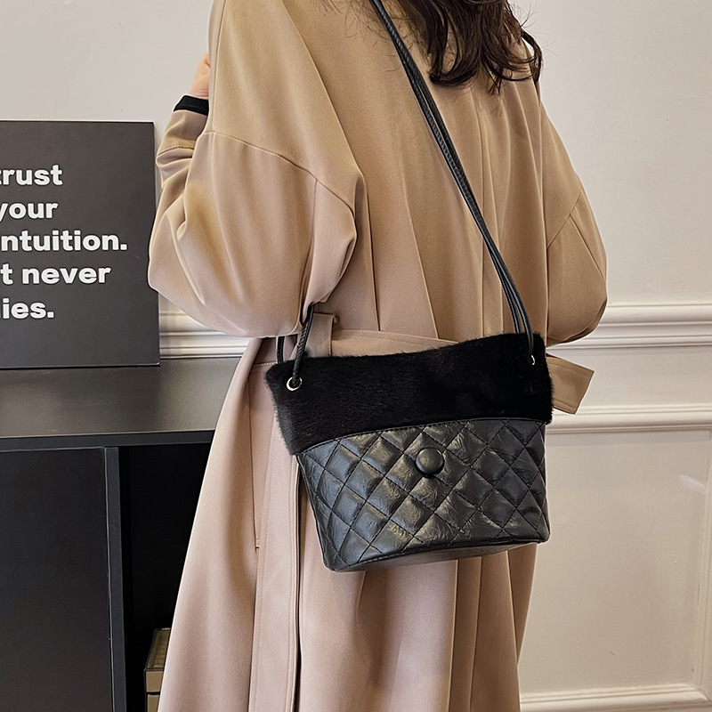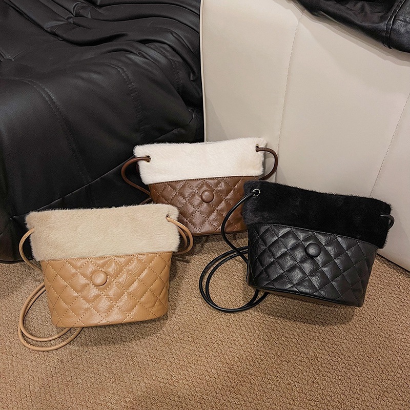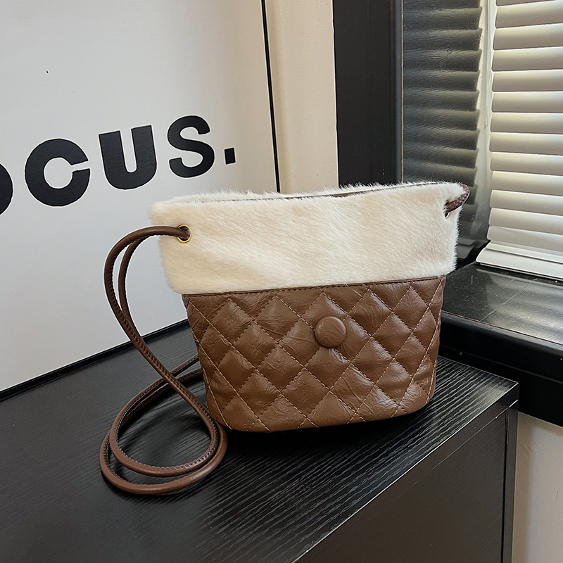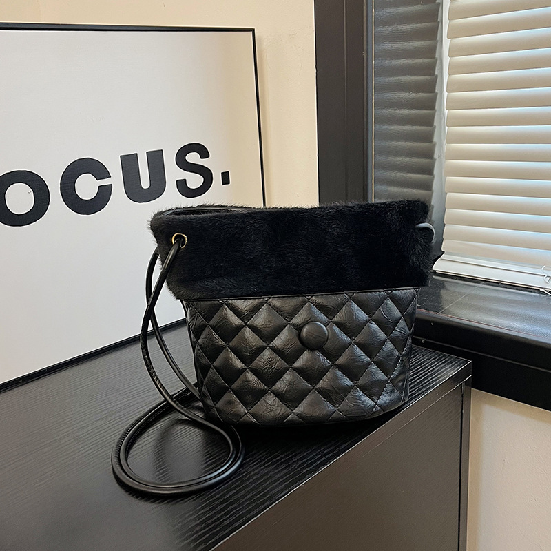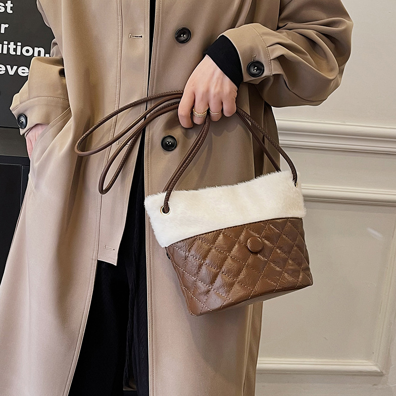 Ретро ромб решетки плюшевая сумка женская 2024 новая ручная ручная ведро корзина корзина небольшая сумка для поездок на одно плечо