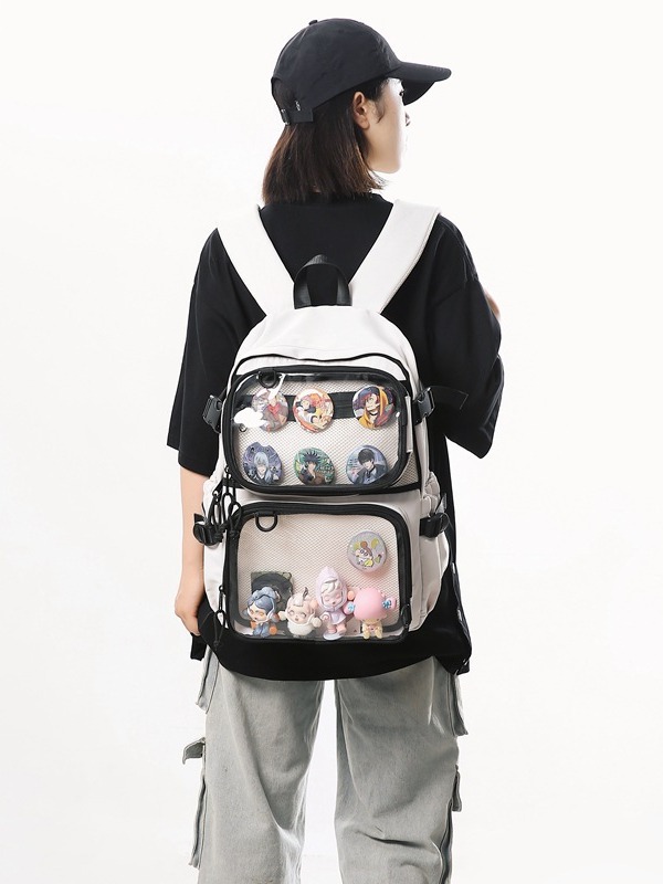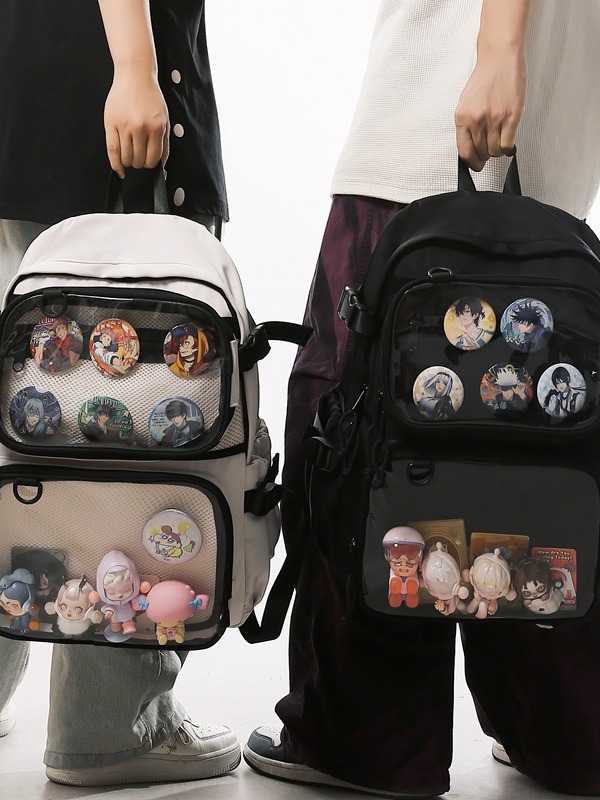 Набор из двух рюкзаков в стиле аниме, можно носить как двойную сумку через плечо или как одинарную сумку через плечо, съемный многофункциональный карман из ПВХ, школьная сумка большой вместимости, которую можно собрать своими руками.